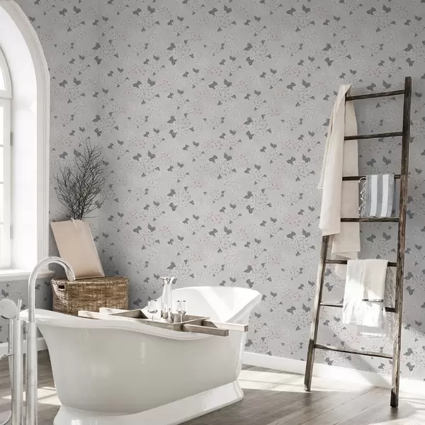 Tapet Luftige blomster på lys bakgrunn, myke rosa-grå toner Nr. a00600