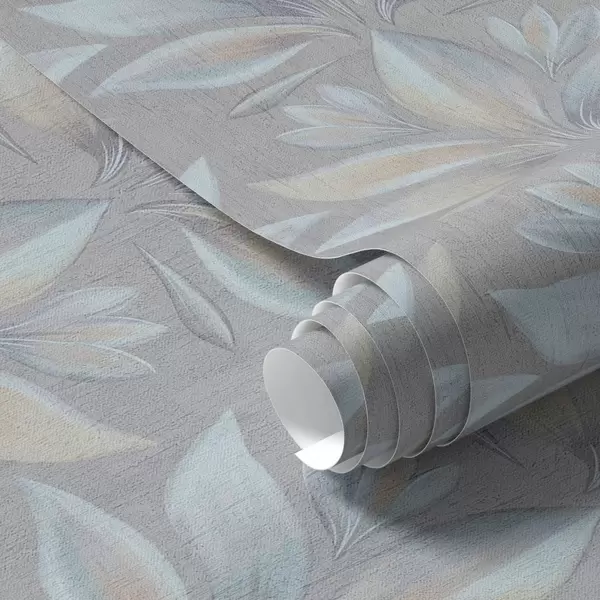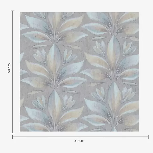 Tapet Store stiliserte blader i en blå-sandpalett på grått Nr. a00601