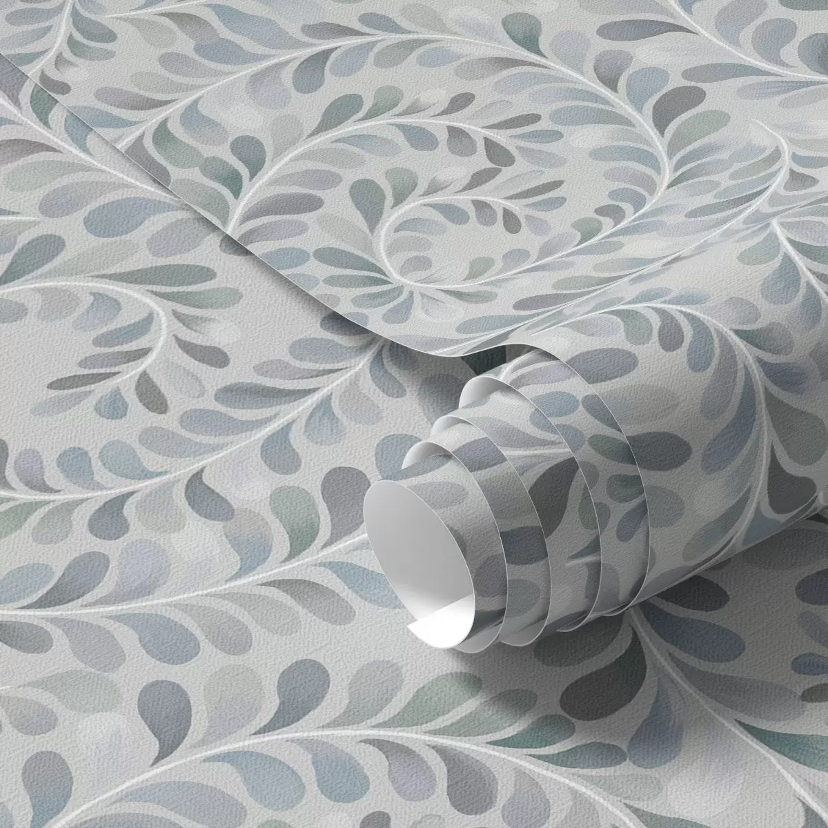 Tapet Spiralformede blader i en blå-grå-grønn fargepalett Nr. a00602