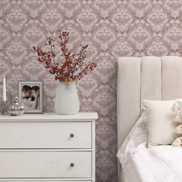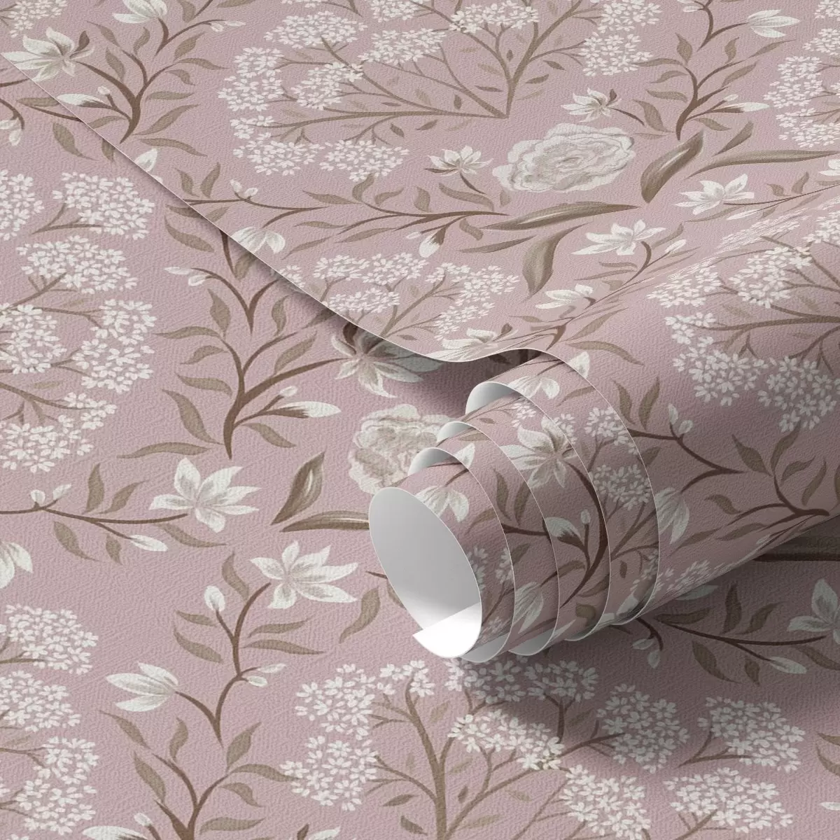 Tapet Rosa damask: pioner, snøklokker og kniplingslignende klynger Nr. a00603