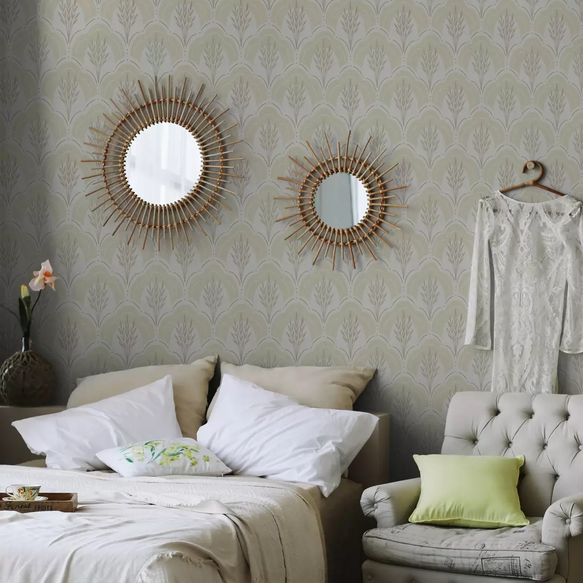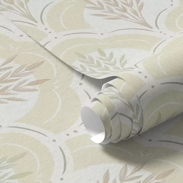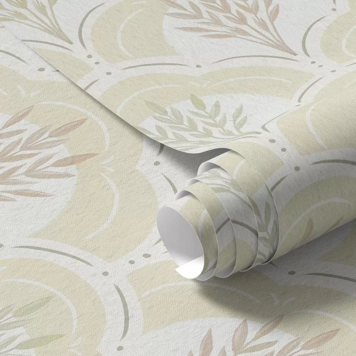 Tapet Hvete innenfor buer, myk kremgul akvarellbakgrunn Nr. a00607