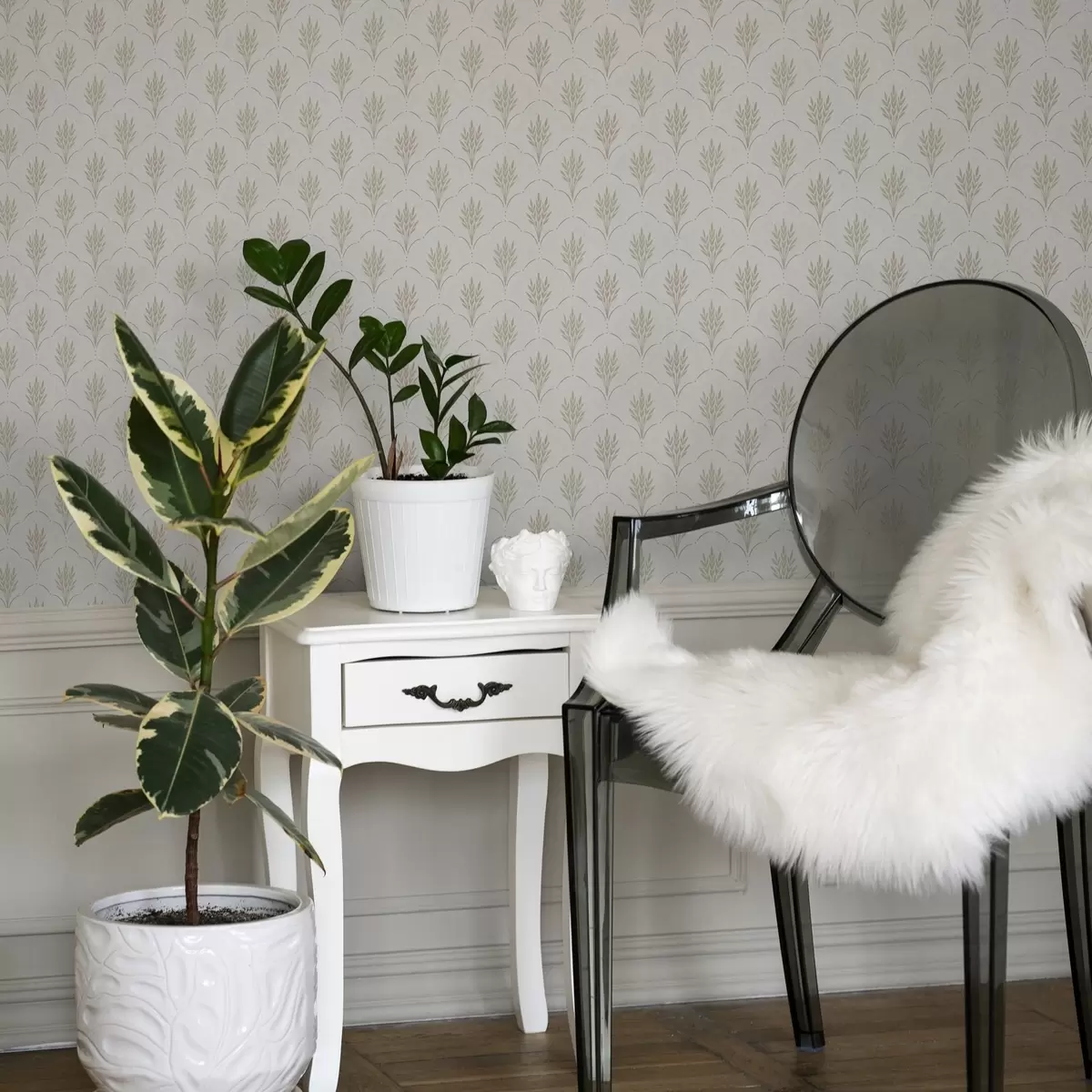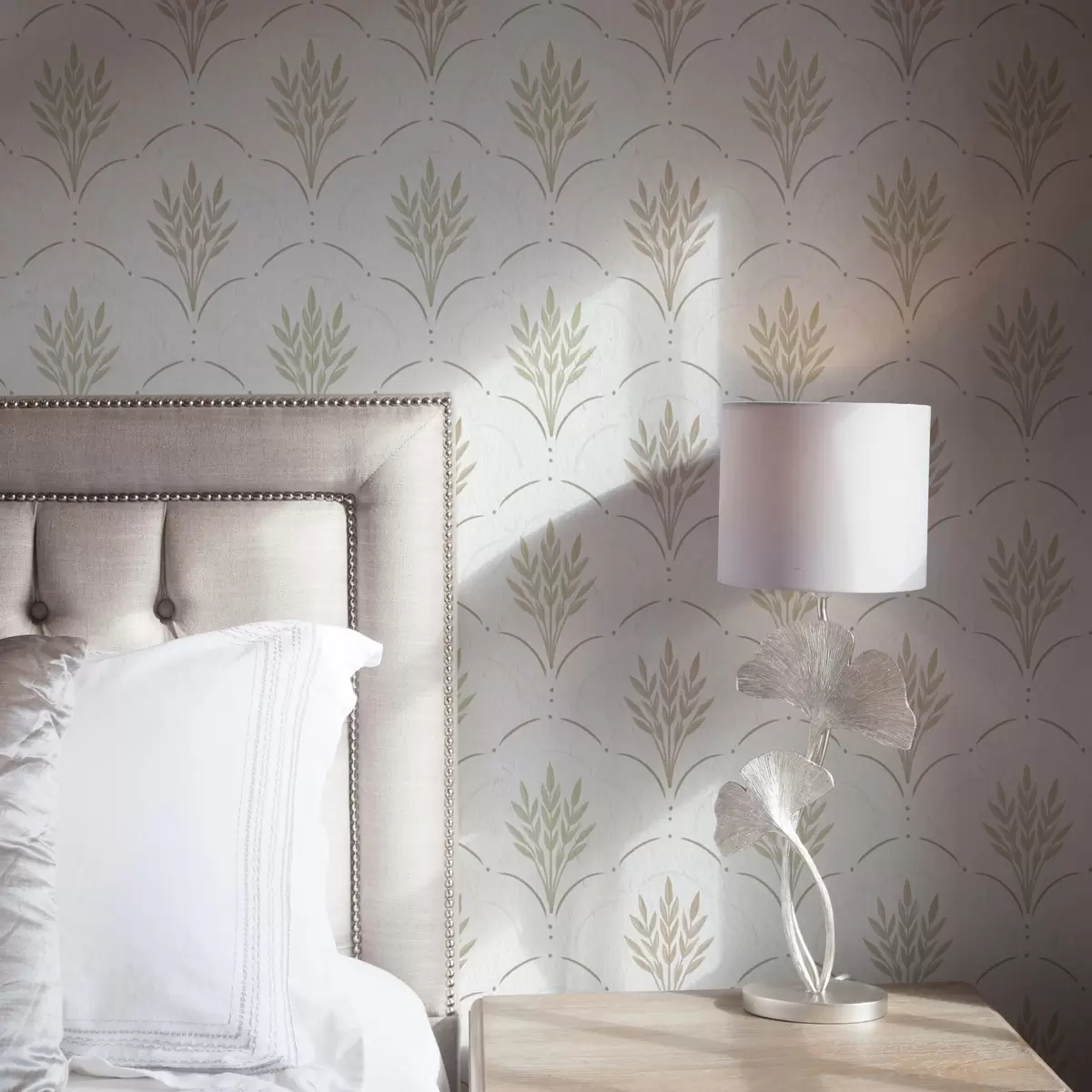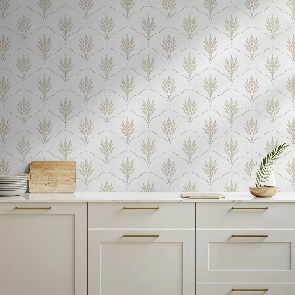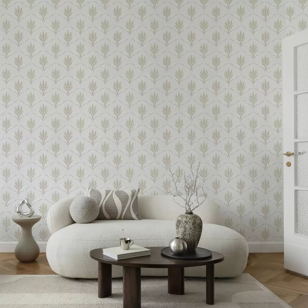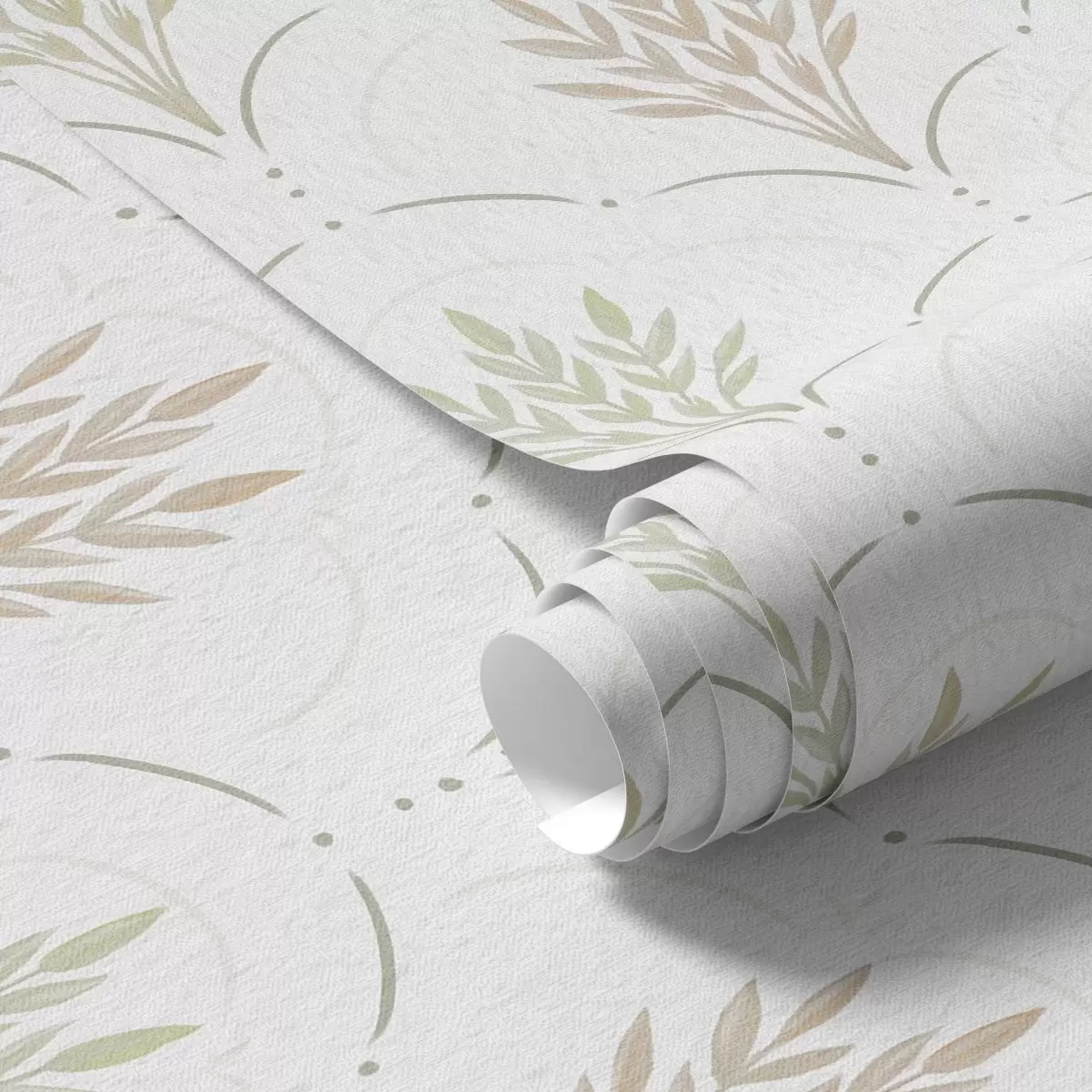 Tapet Hvete i et buet ornament, myke pastellfarger på hvitt Nr. a00607v1