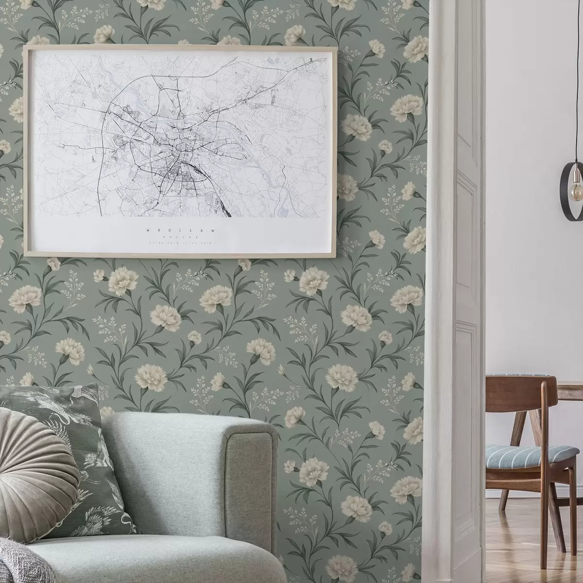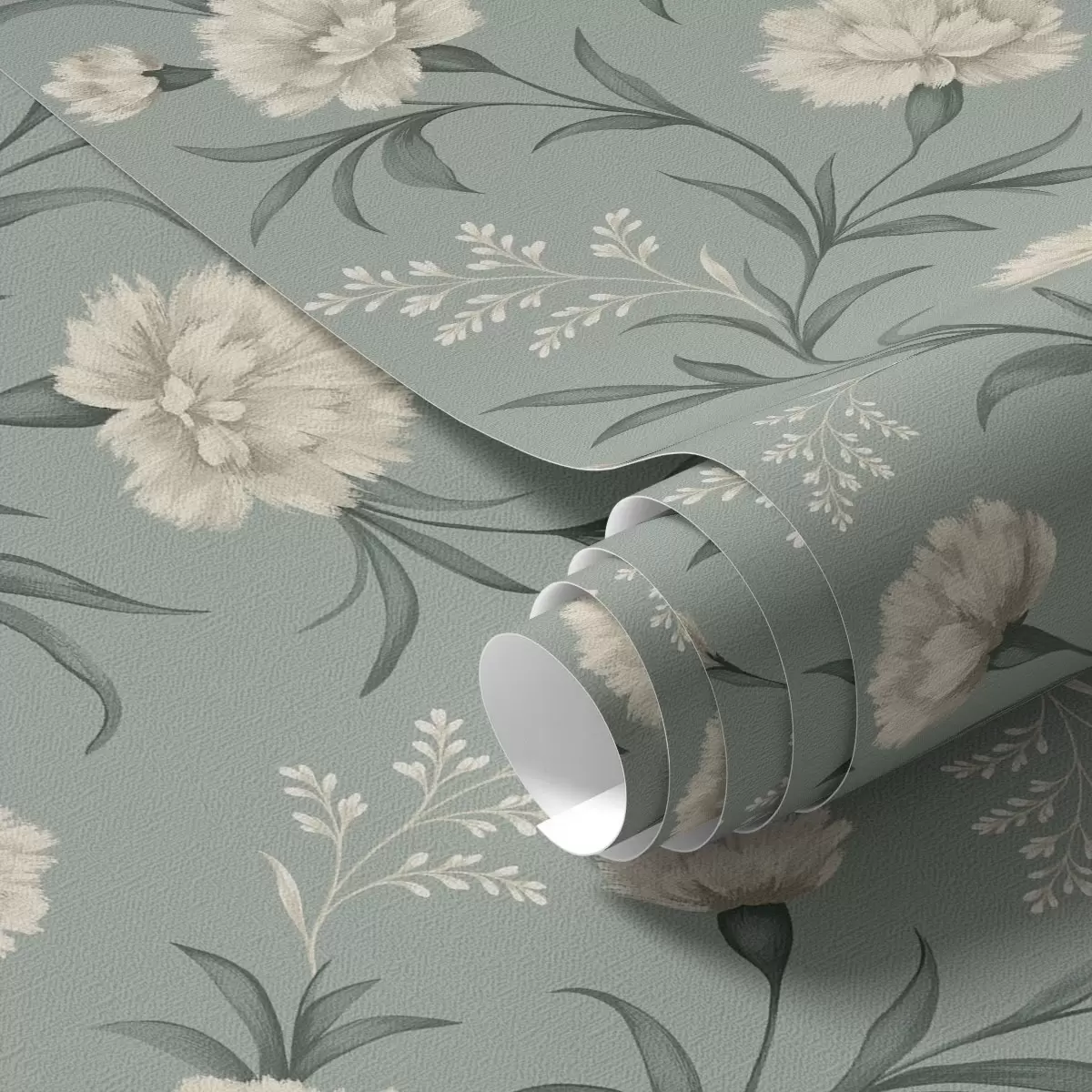 Tapet Pulveraktige nelliker på en gråblå bakgrunn, raffinert trykk Nr. a00610