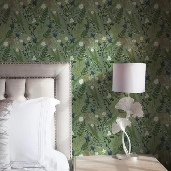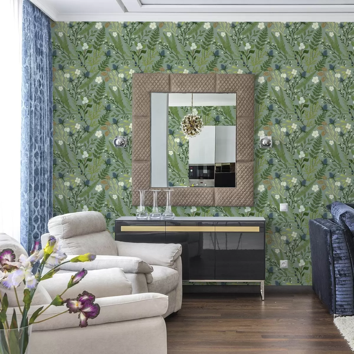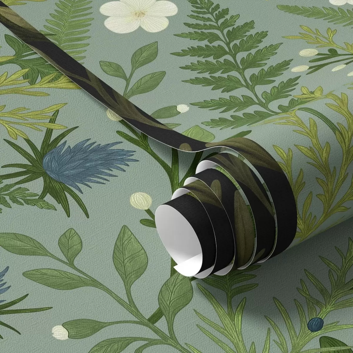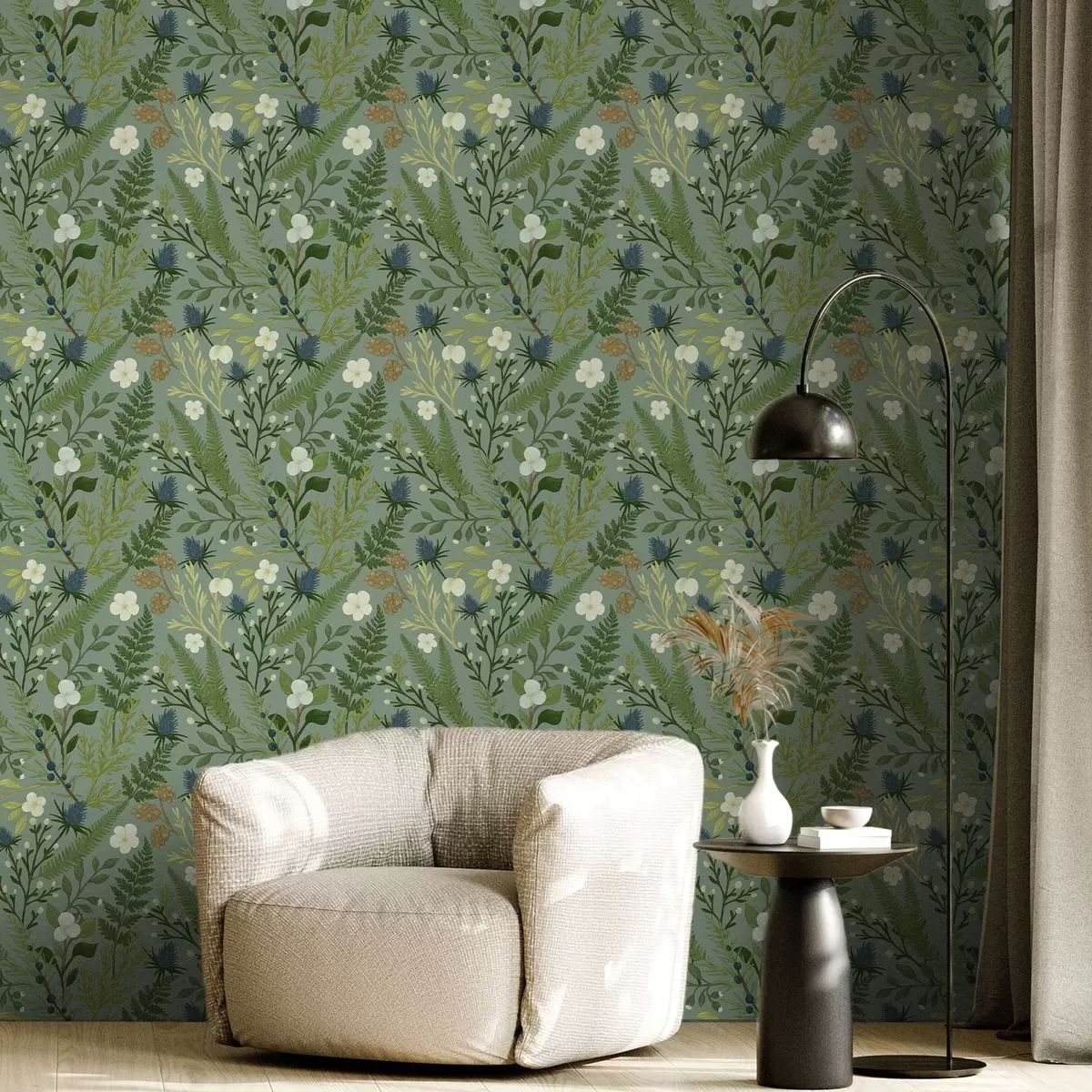 Tapet Skogsurter, sikori og bær på en bakgrunn av mynte Nr. a00621v1
