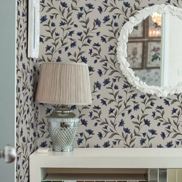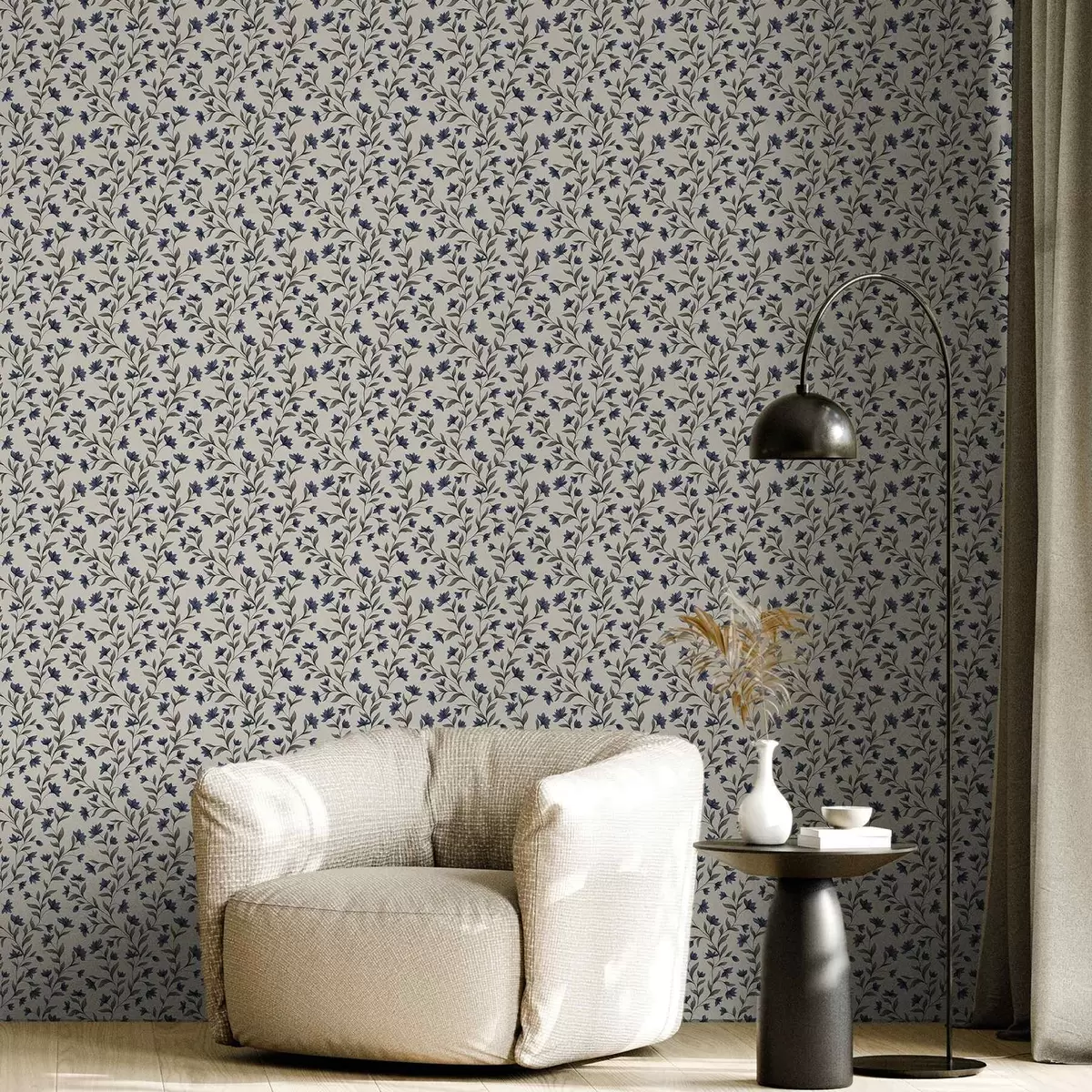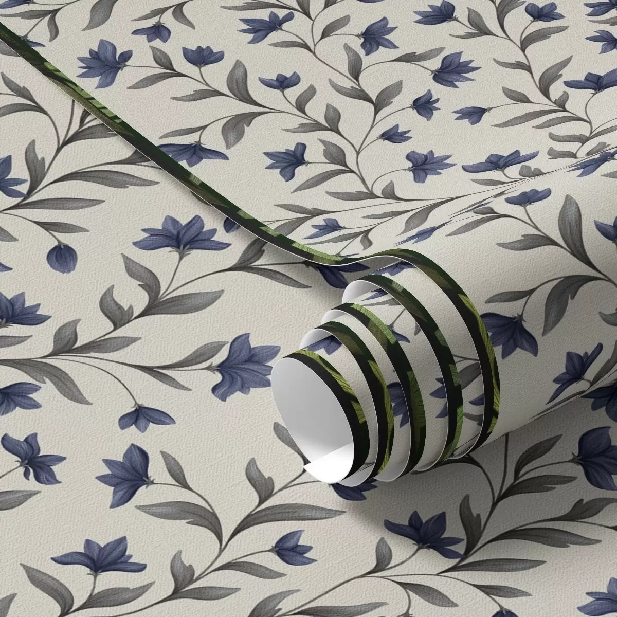 Tapet Blåklokker og grågrønt på lys bakgrunn Nr. a00622v1