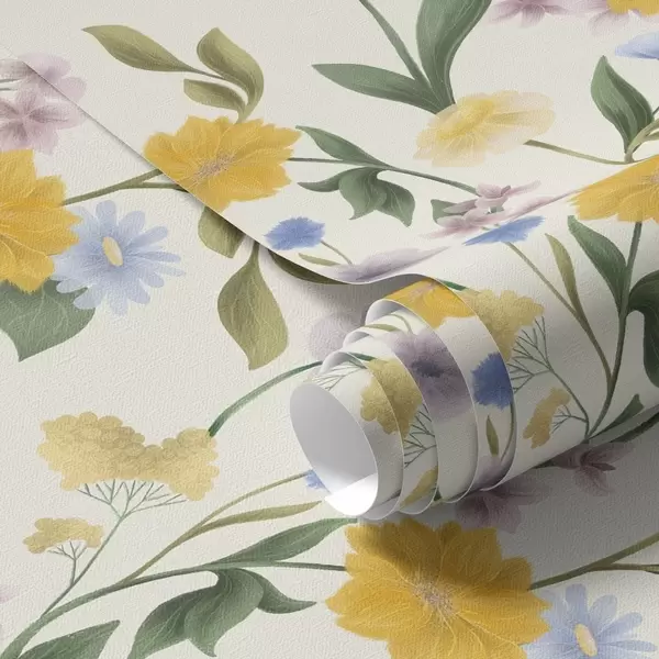 Tapet Mild blanding av villblomster i pastellfarger Nr. a00624