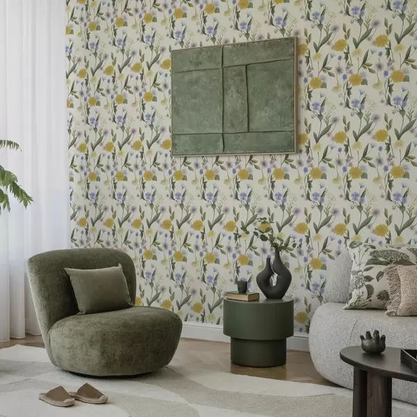 Tapet Mild blanding av villblomster i pastellfarger Nr. a00624