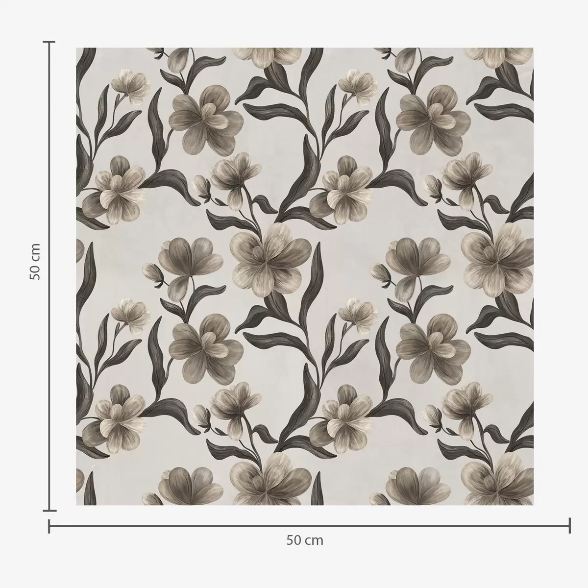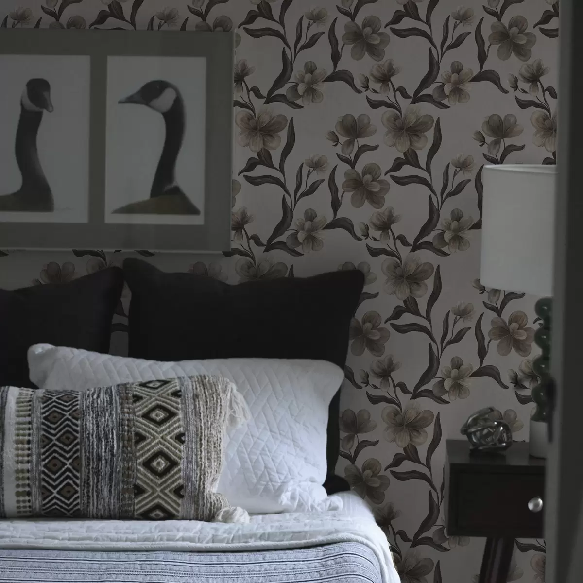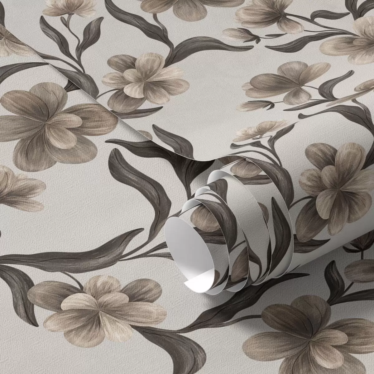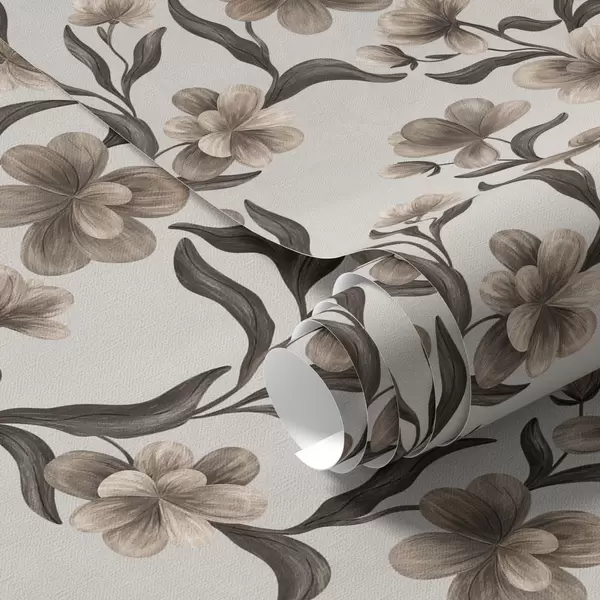 Tapet Beige blomster og mørke grener på en lysegrå bakgrunn Nr. a00626v1