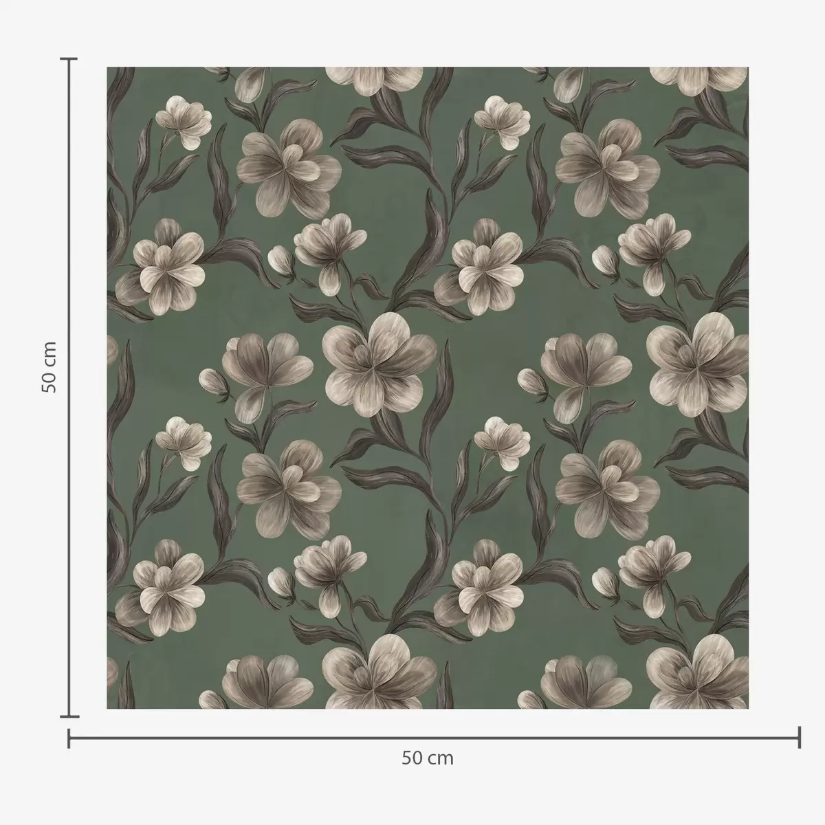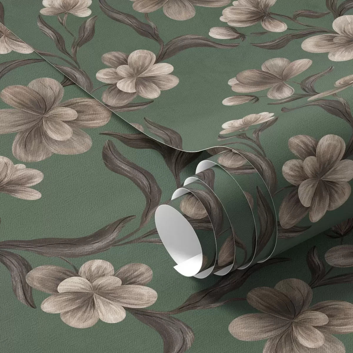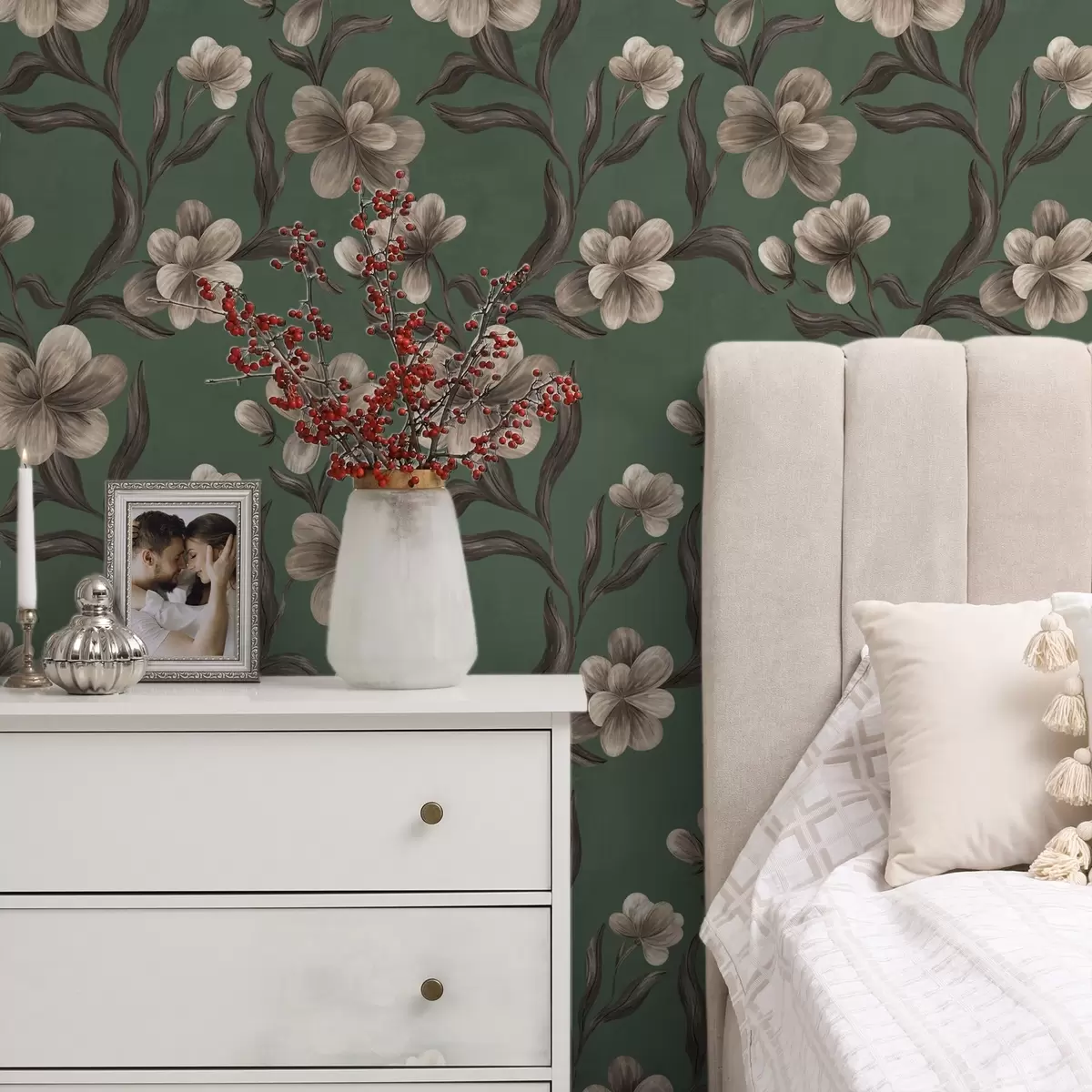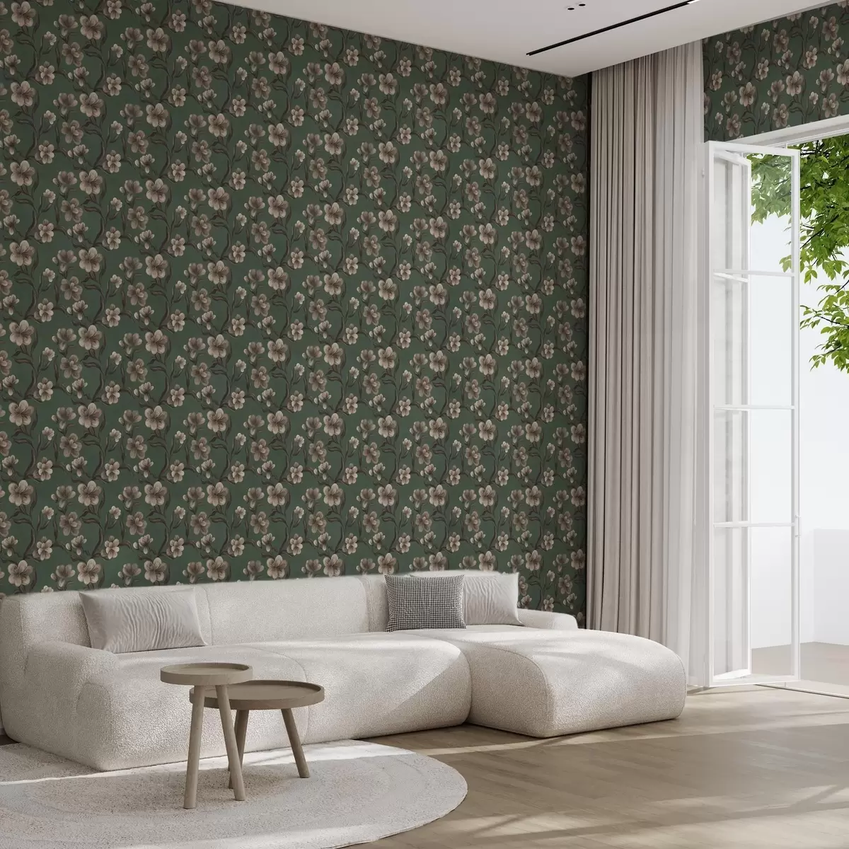 Tapet Beige blomster på en rik grønn bakgrunn Nr. a00626v3
