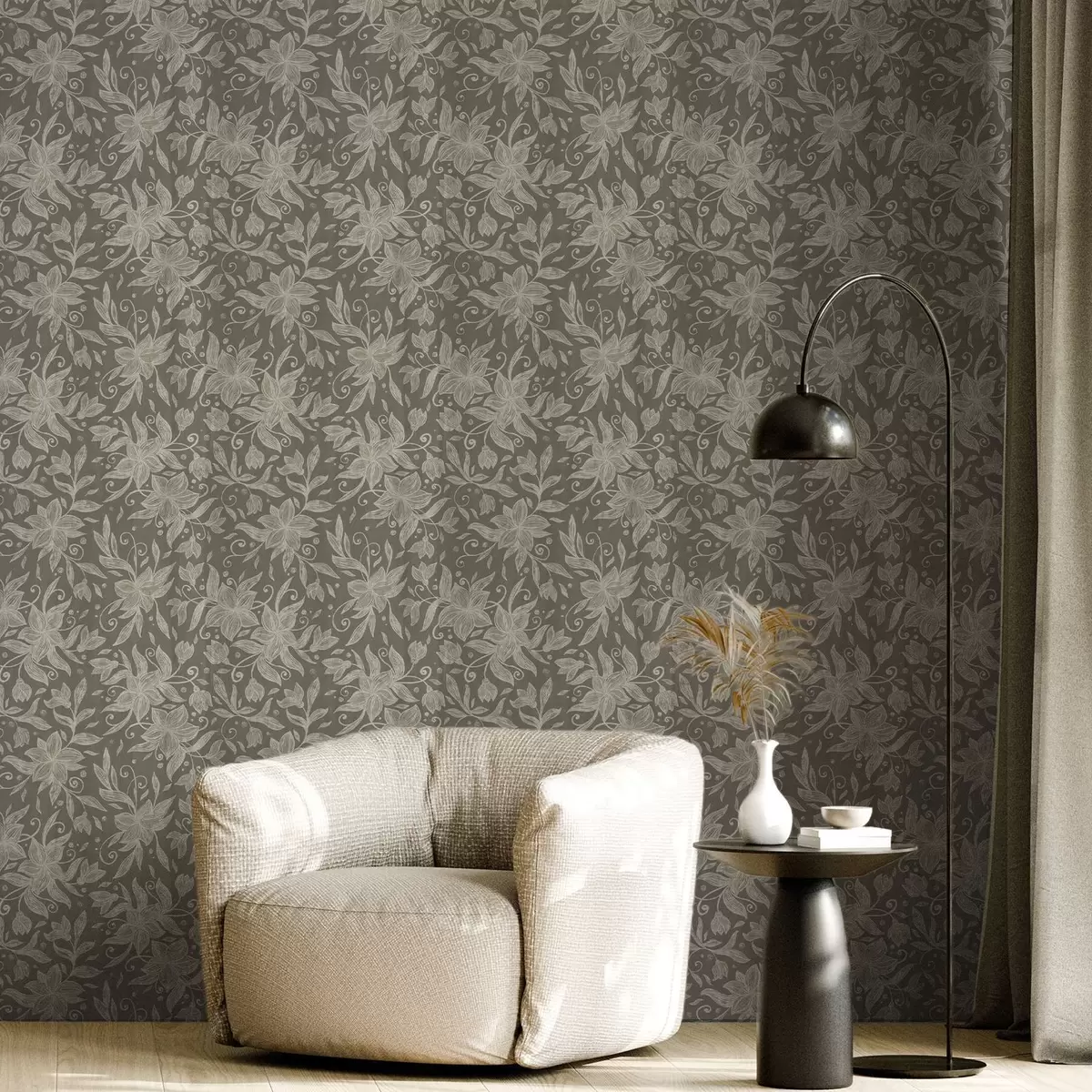 Tapet Lette lineære blomster, dekorative krøller Nr. a00630v1