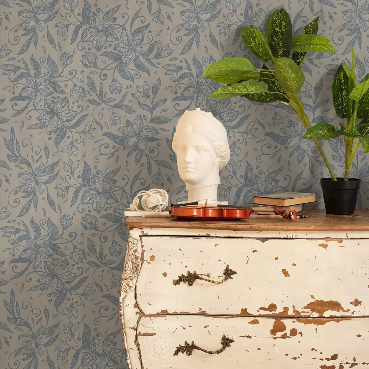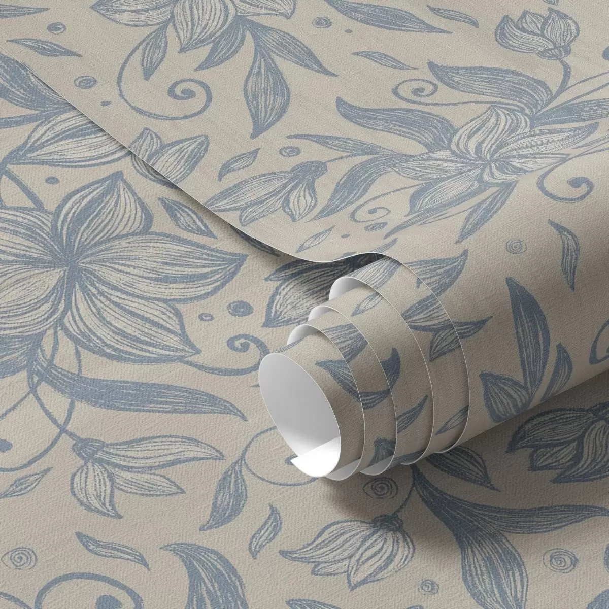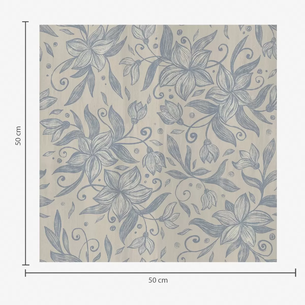 Tapet Blått lineært blomstermønster på varm beige Nr. a00630v2