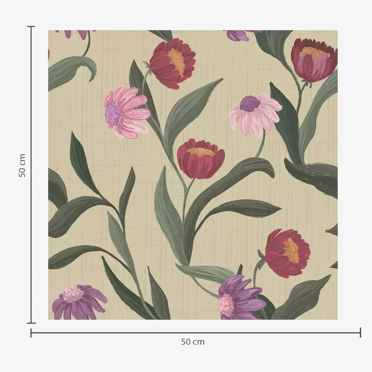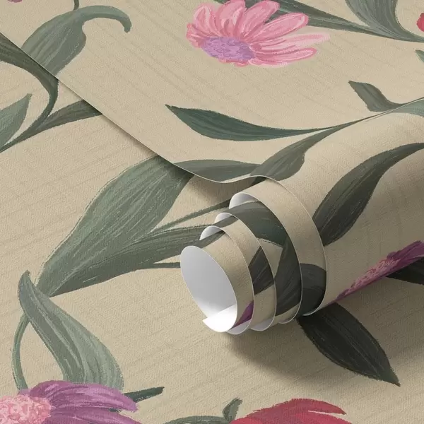 Tapet Rosa-røde blomster på beige bakgrunn, håndtegnet tekstur Nr. a00631