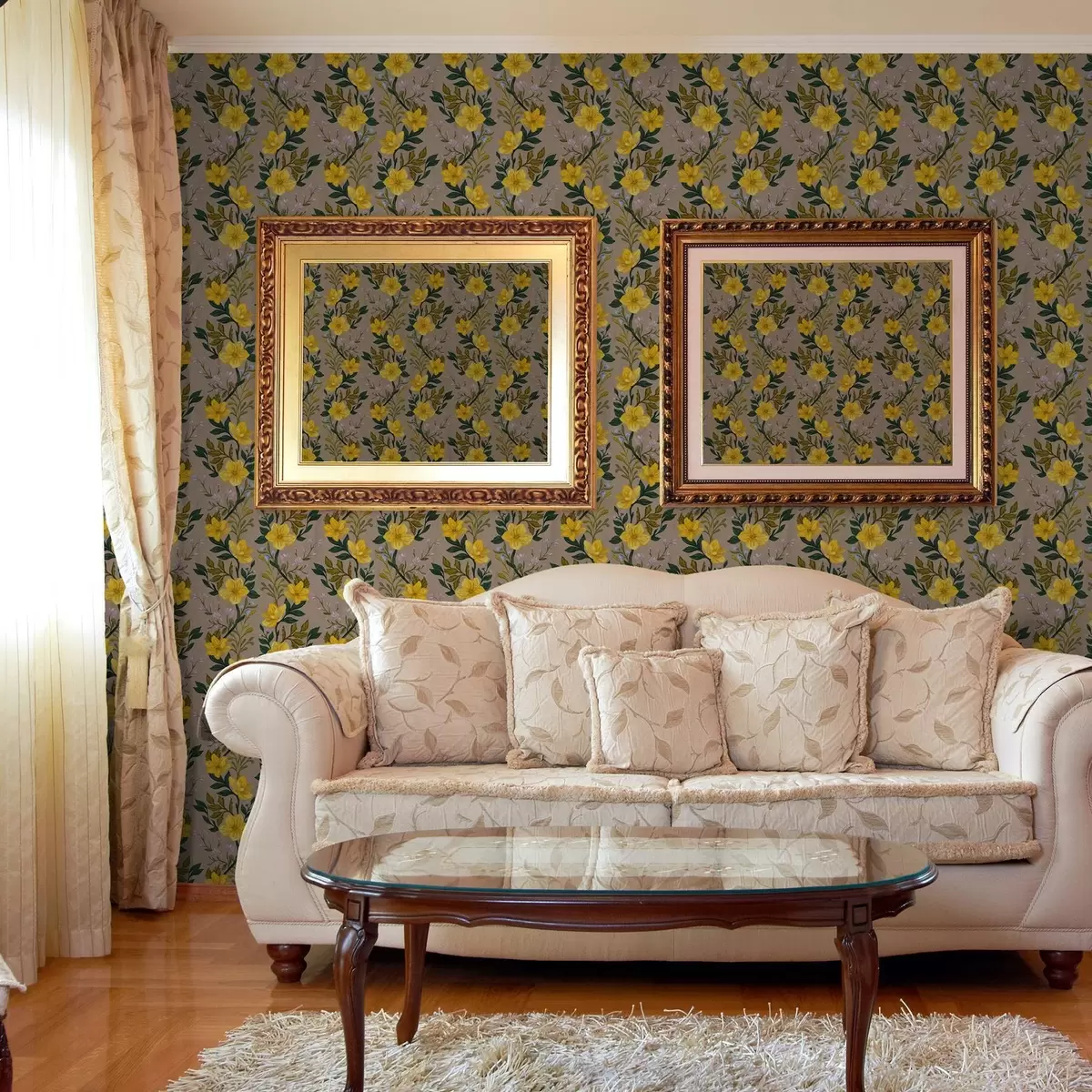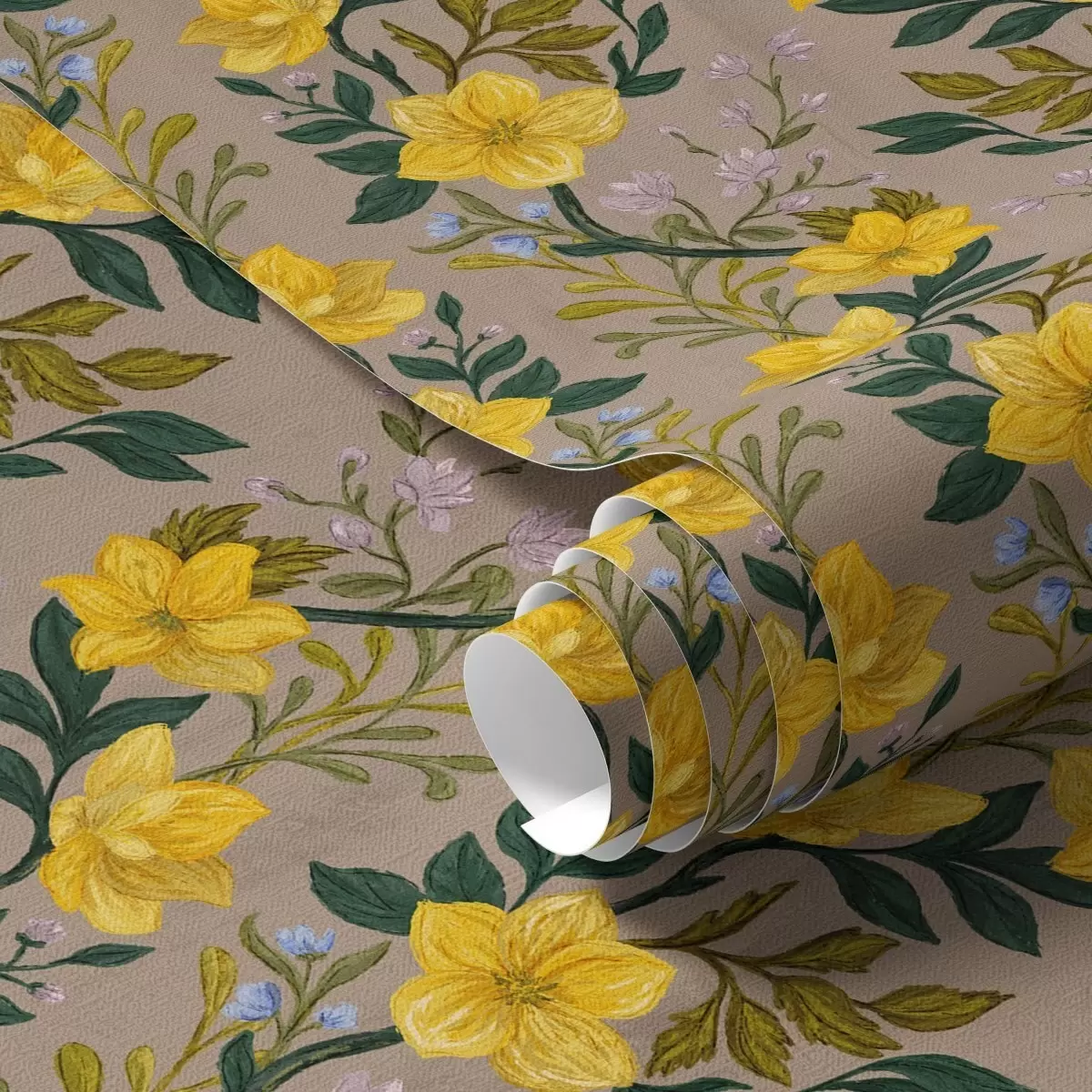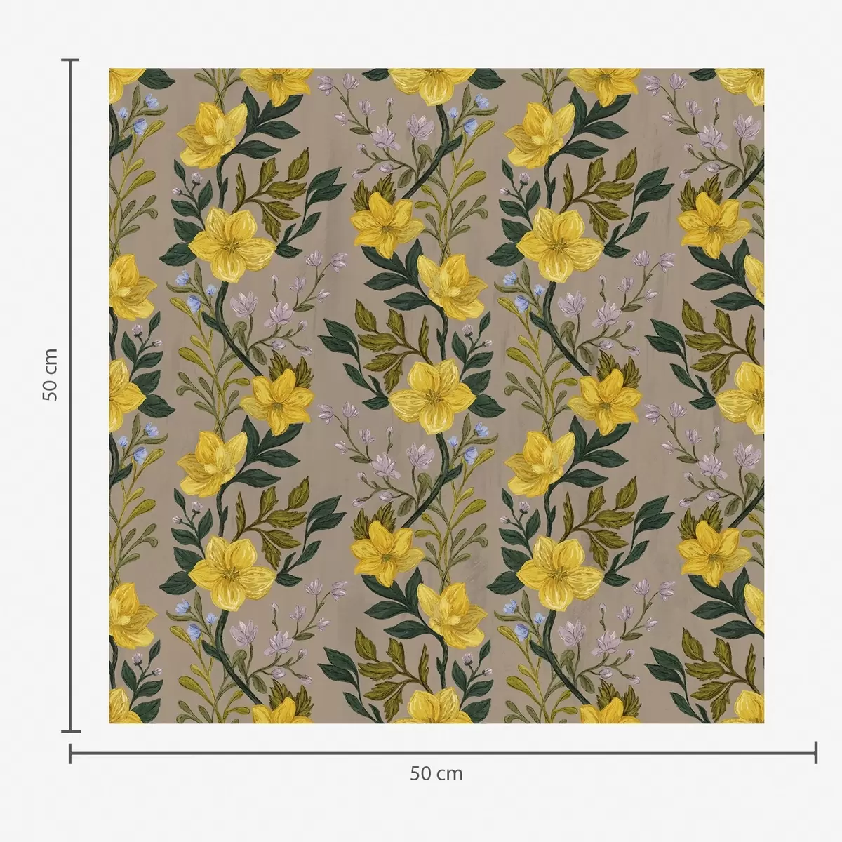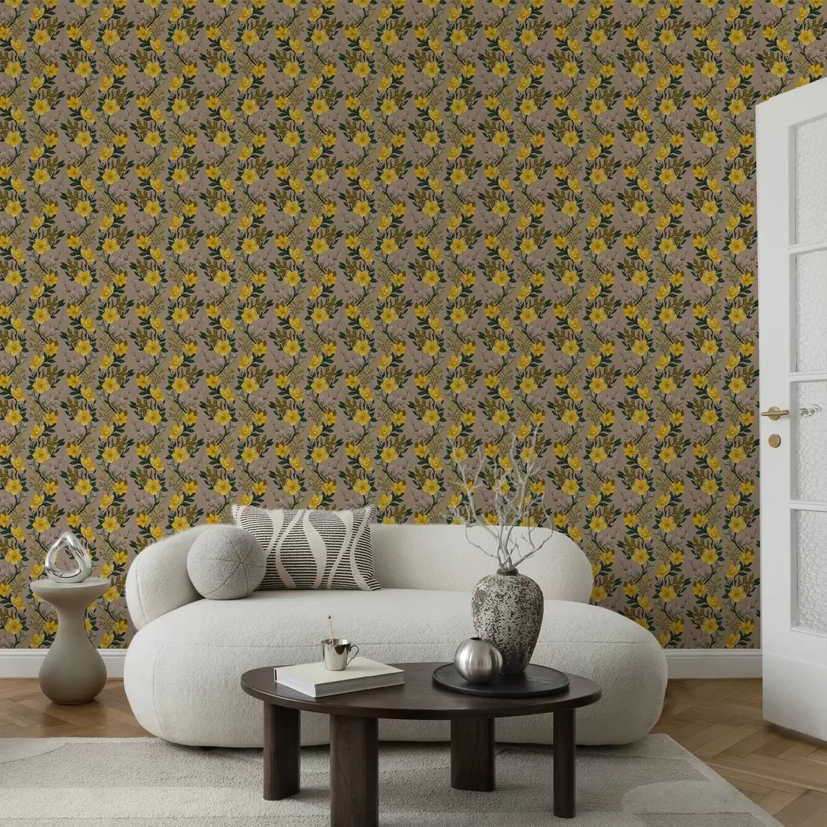 Tapet Gule blomster i vertikale kranser på en taupefarget bakgrunn Nr. a00632v1