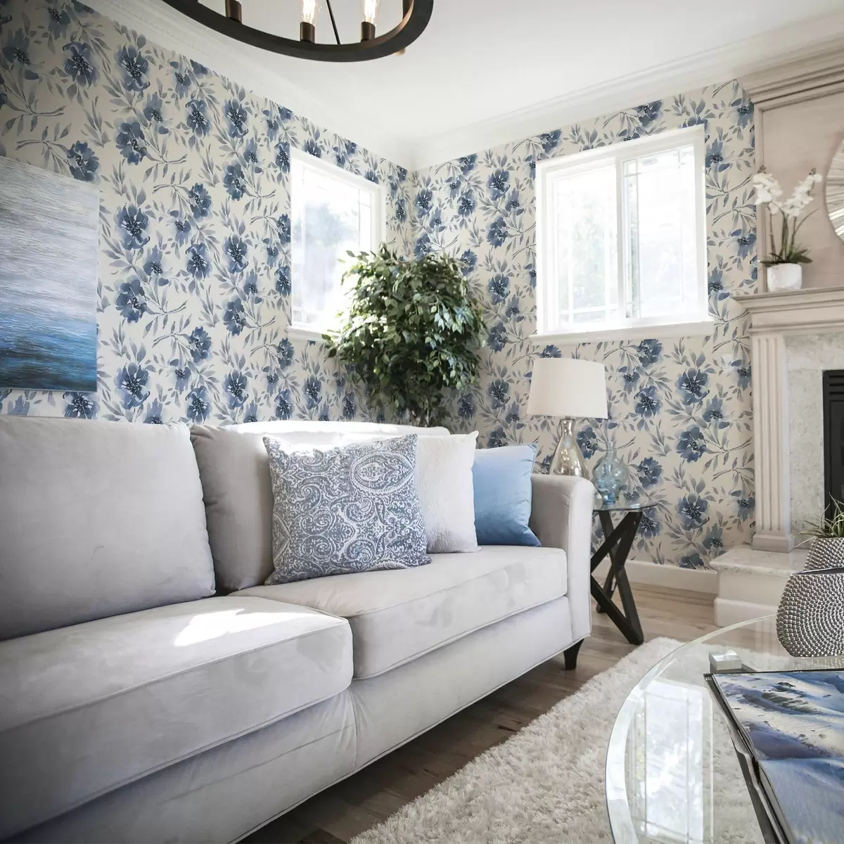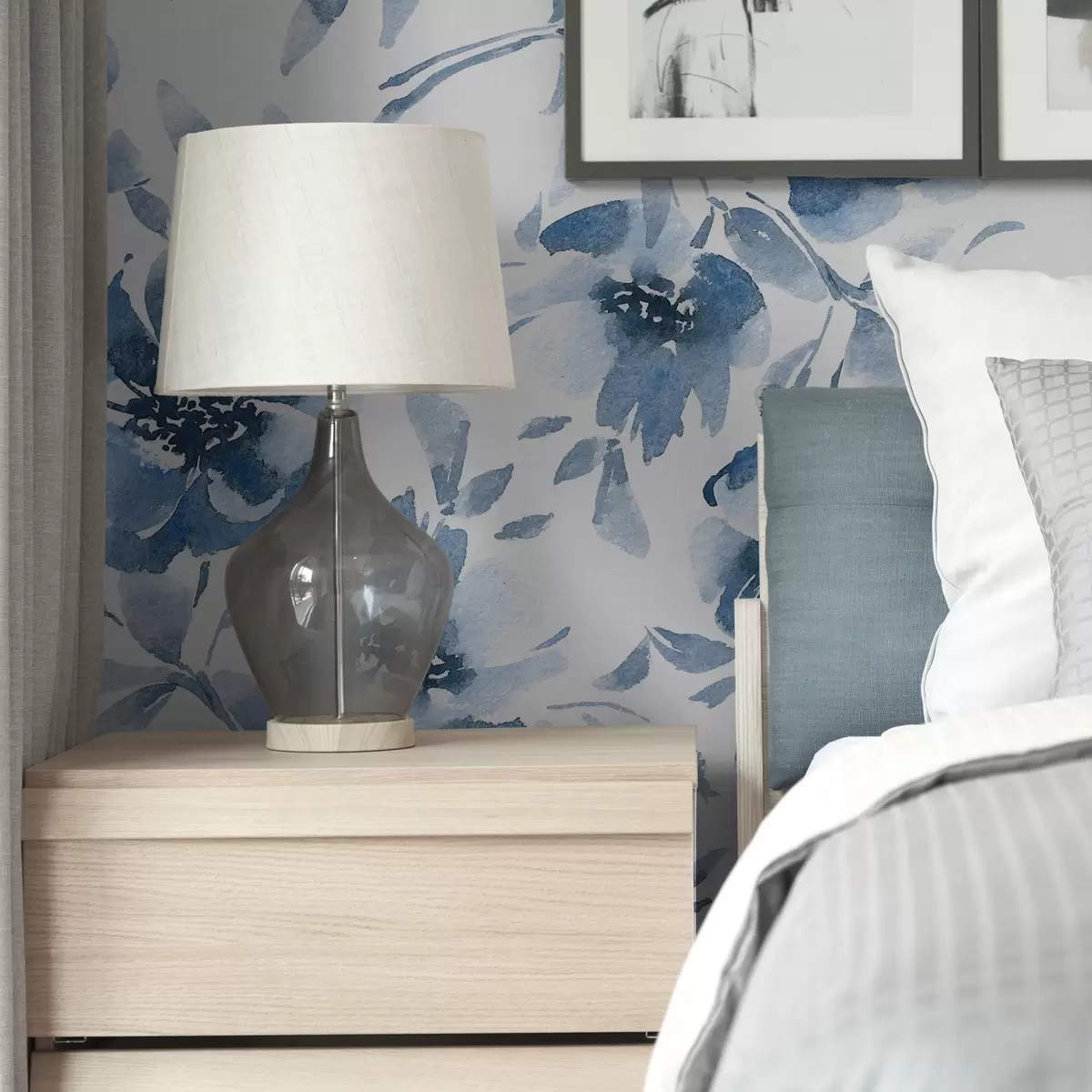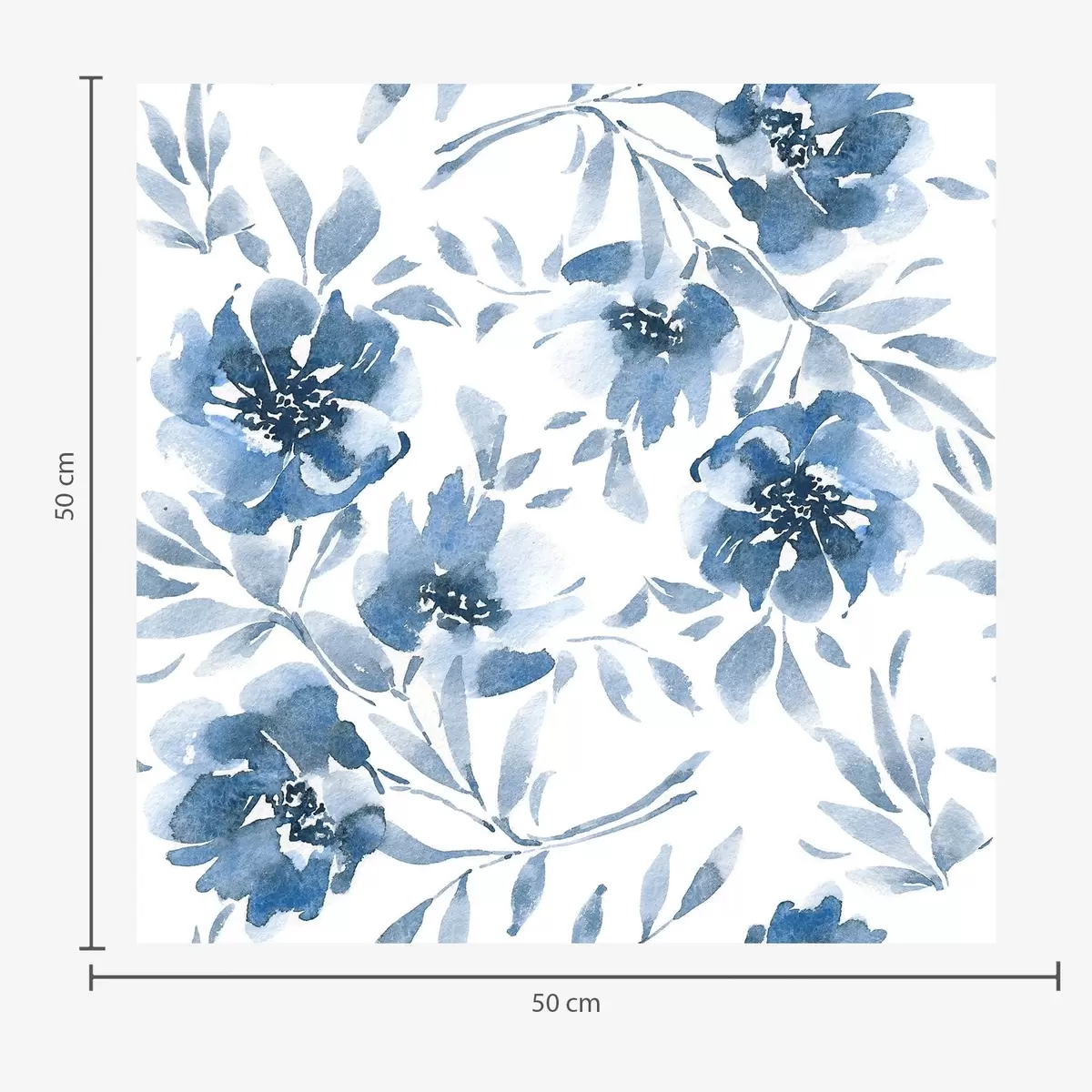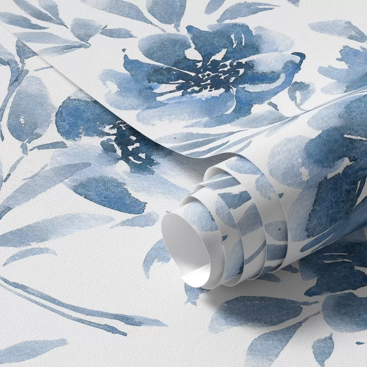 Tapet Akvarellmalte indigoblå pioner på hvit bakgrunn Nr. a00641