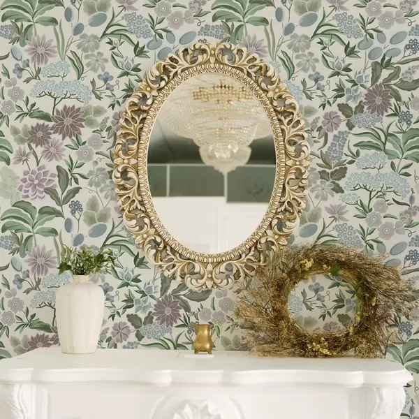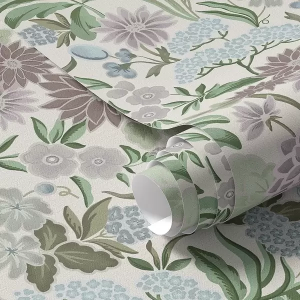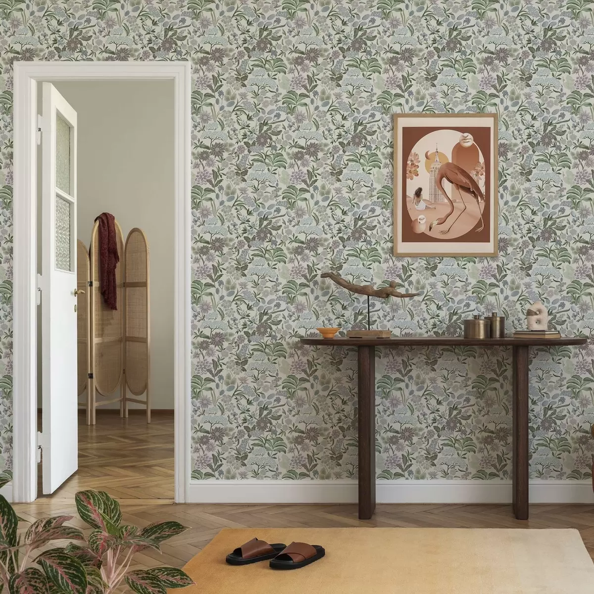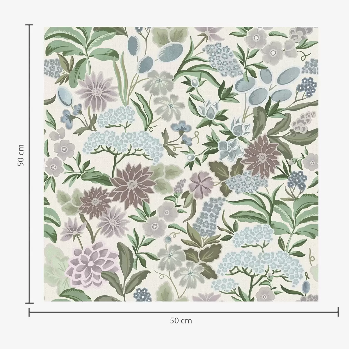 Tapet Pastellfargede blomster og løvverk i en mintblå palett Nr. a00642