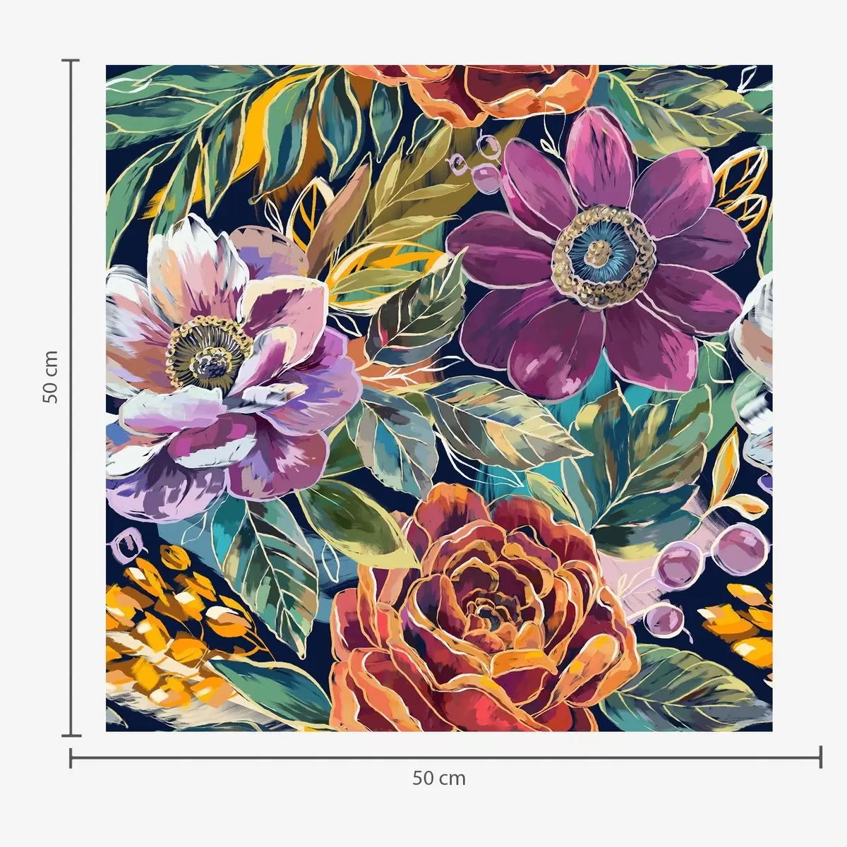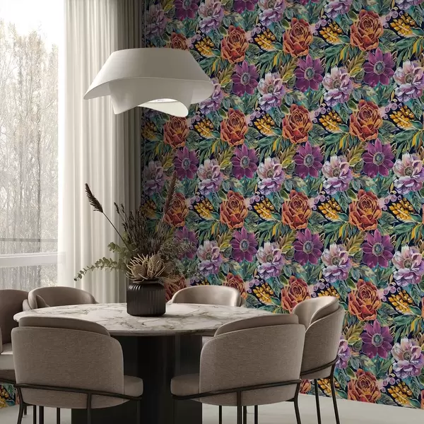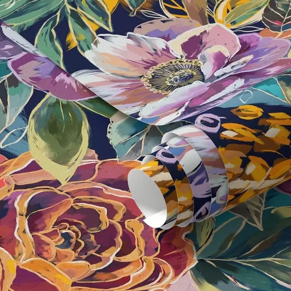 Tapet Fete, store blomster malt med pensel på mørkeblå bakgrunn Nr. a00643