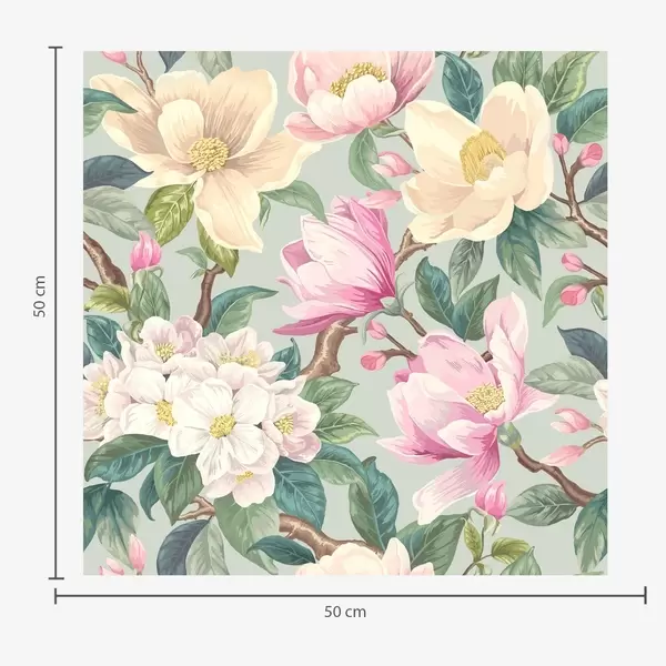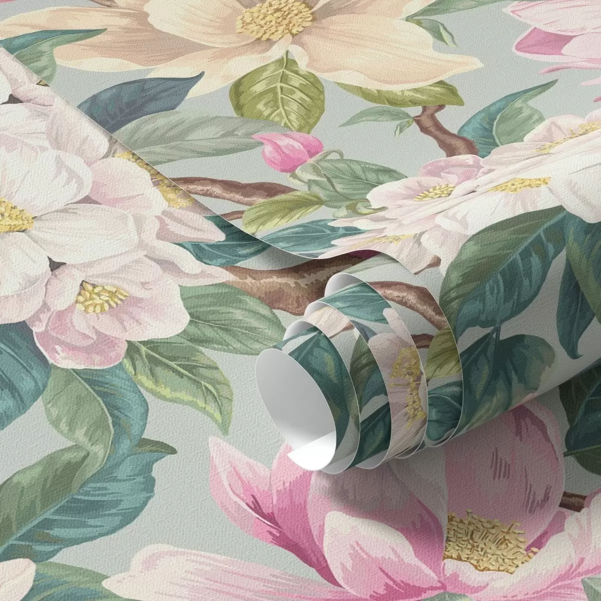 Tapet Magnoliaer og hvite blomster på en mintgrå bakgrunn Nr. a00644