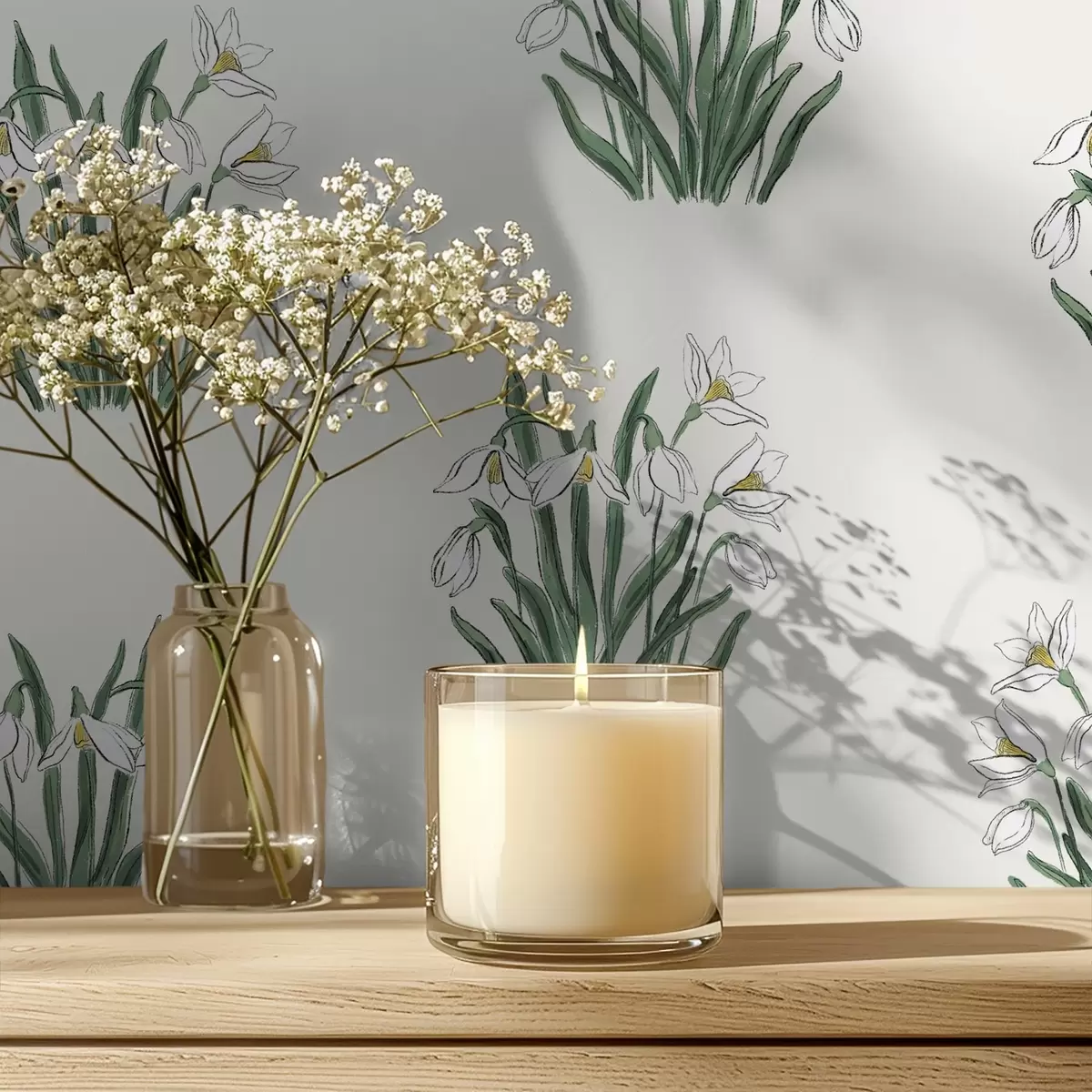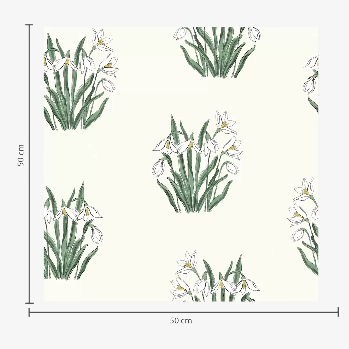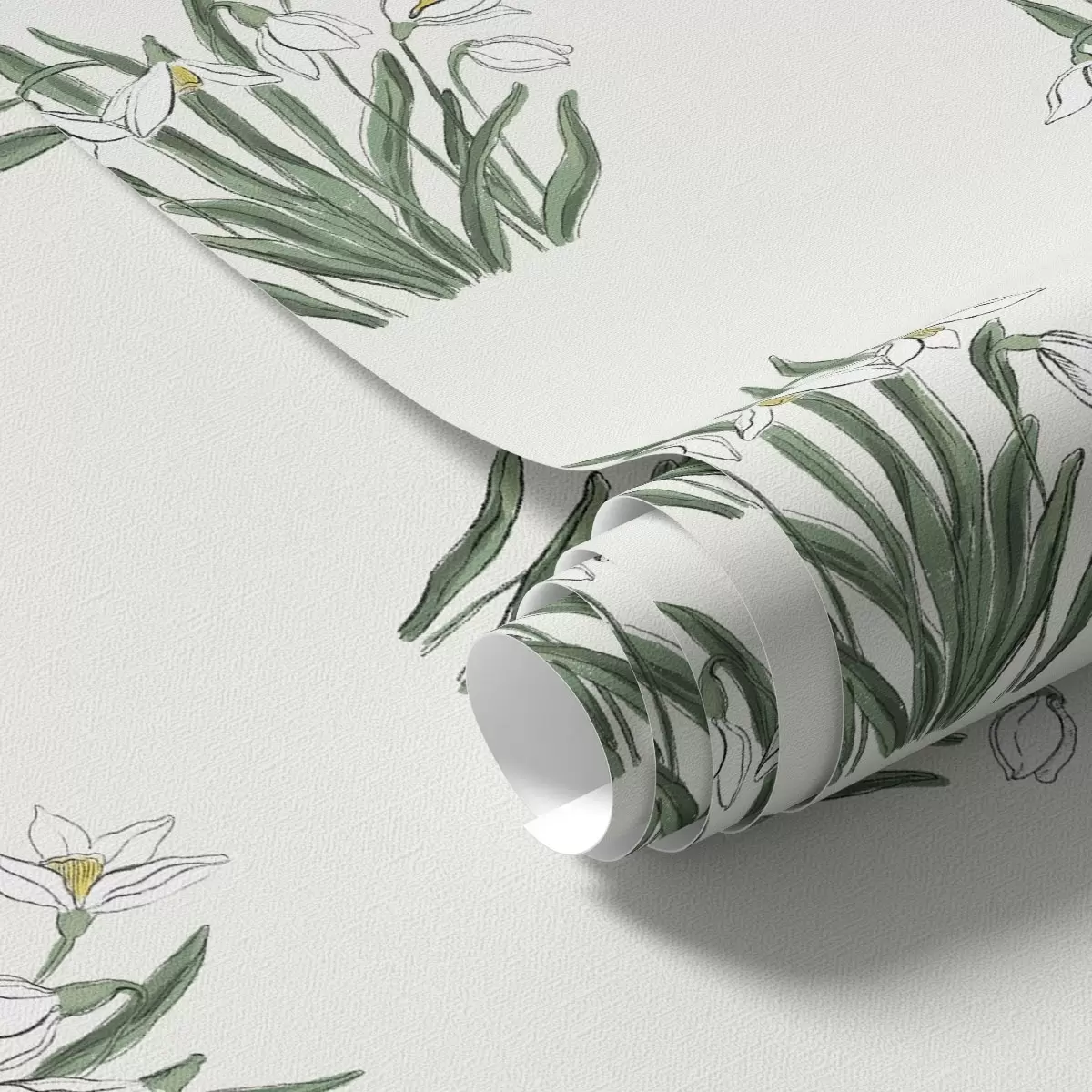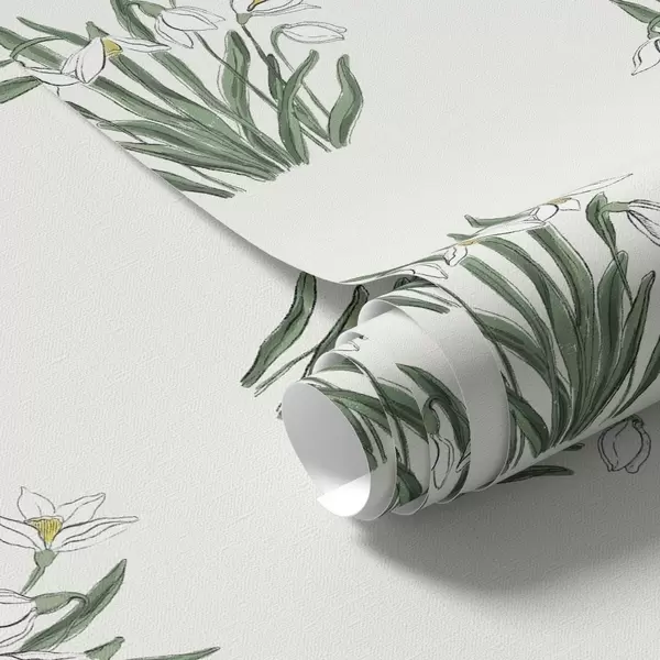 Tapet Snøklokker med grønne blader på lysegrå bakgrunn Nr. a00651v1