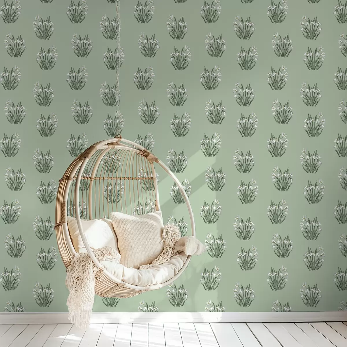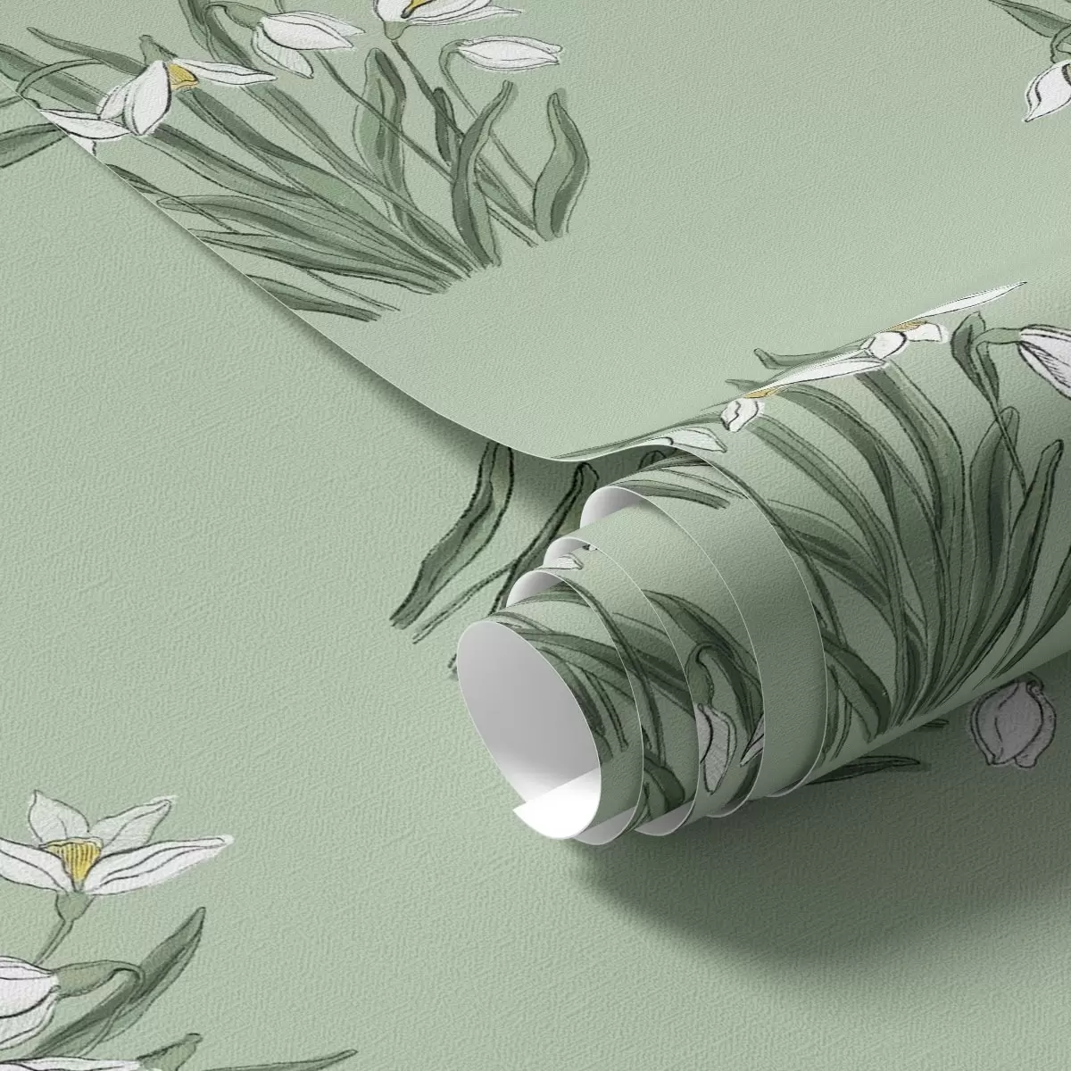 Tapet Snøklokker med grønne blader på en myk grønn bakgrunn Nr. a00651v4