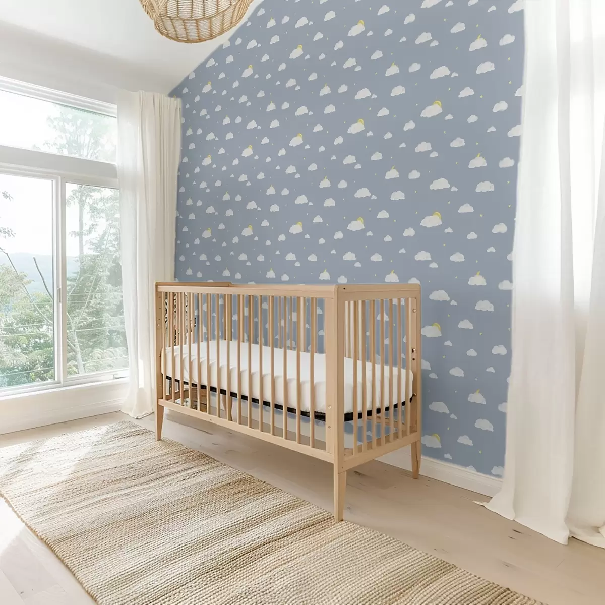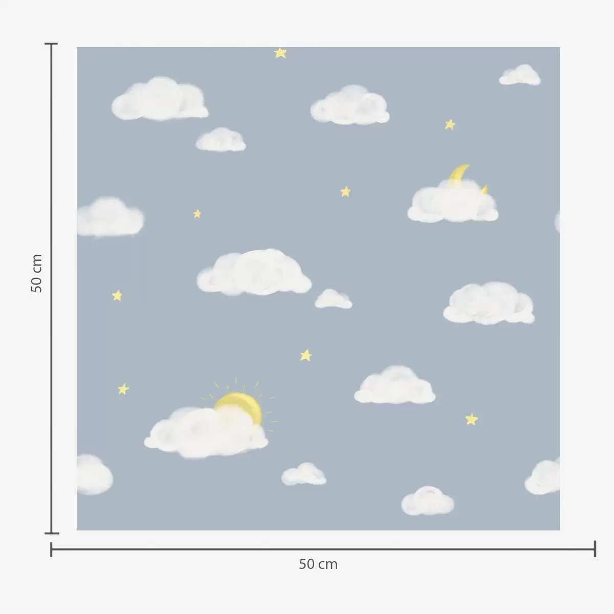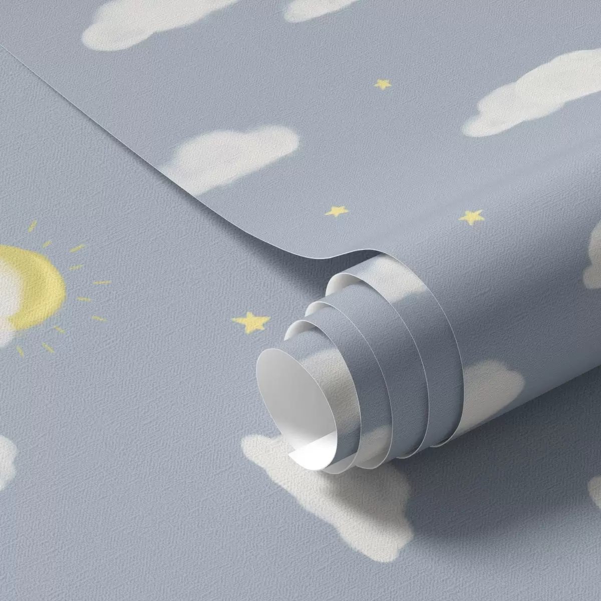 Tapet Myke skyer, stjerner og sol på blå bakgrunn Nr. a00652