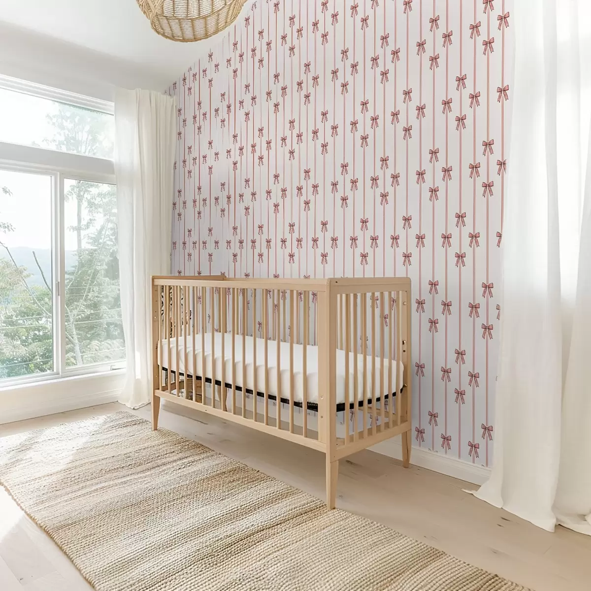 Tapet Vertikale bånd med sløyfer, varm beige Nr. a00653v1