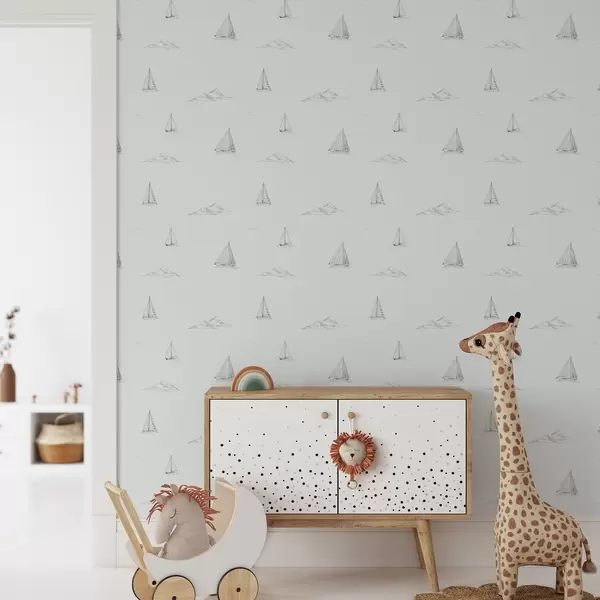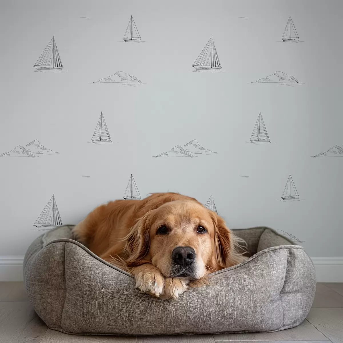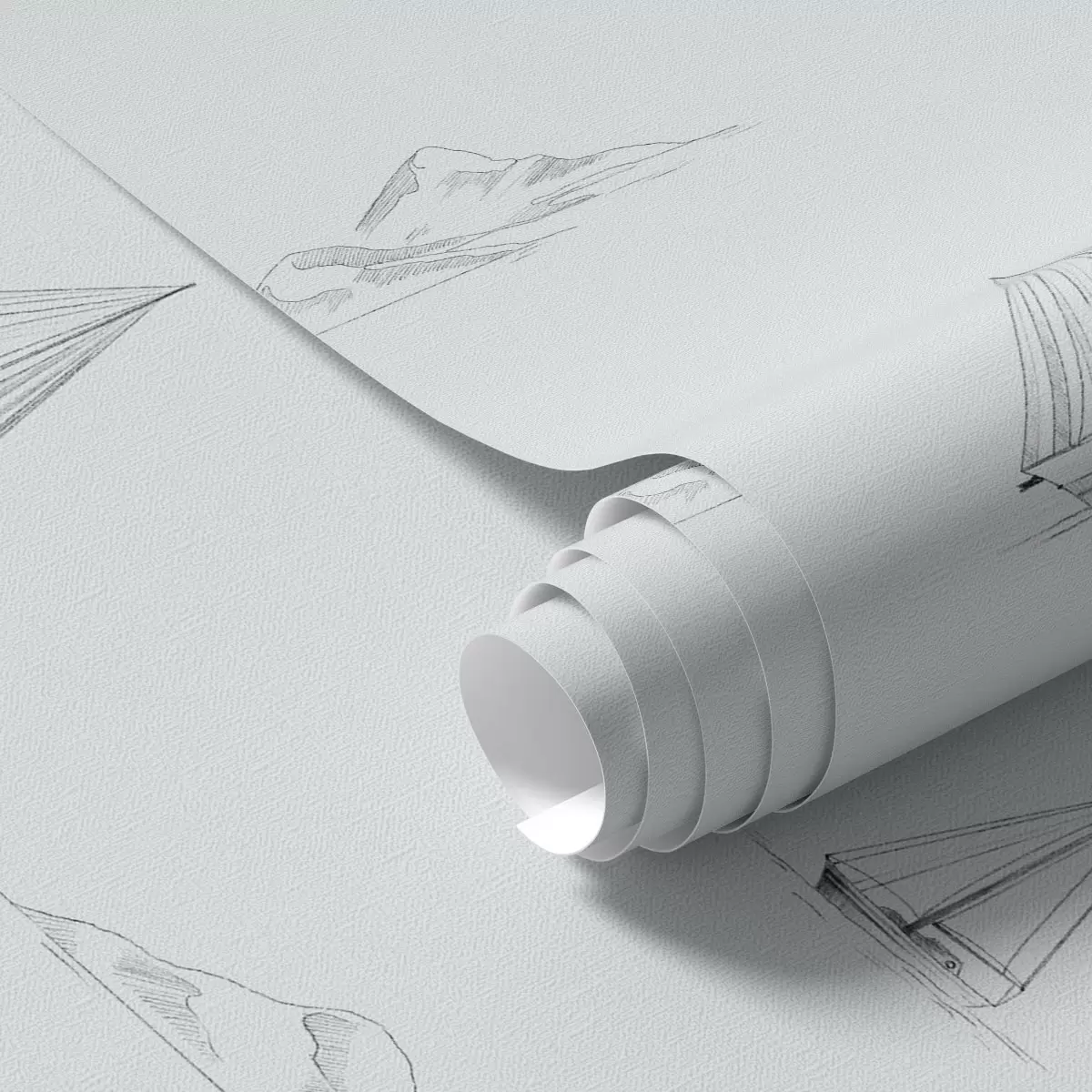Tapet Skisse av yachter og øyer, kul blågrå bakgrunn Nr. a00654