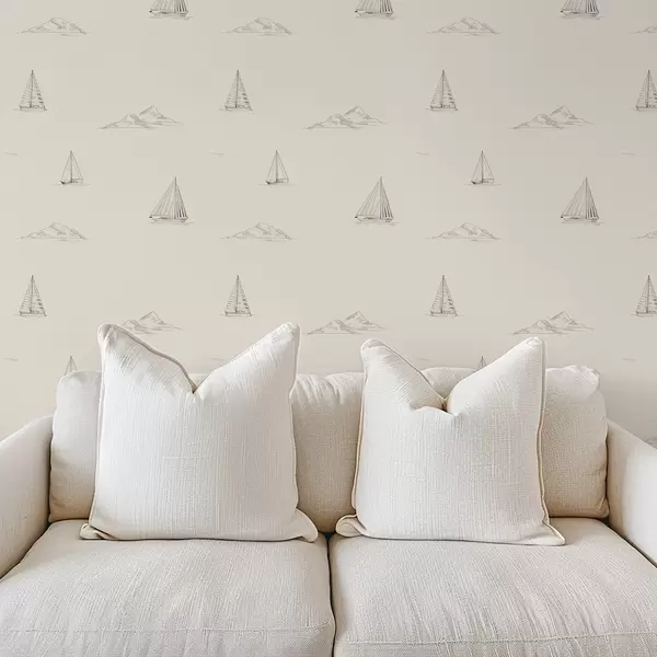 Tapet Skisse av yachter og øyer, varm kremfarget bakgrunn Nr. a00654v1