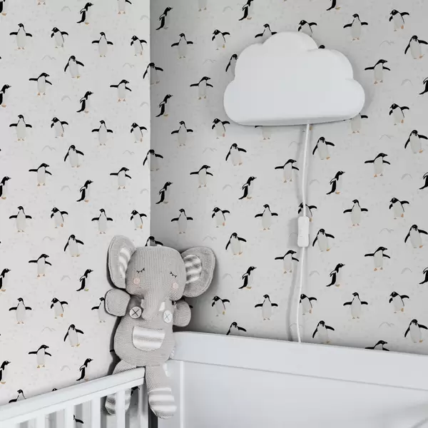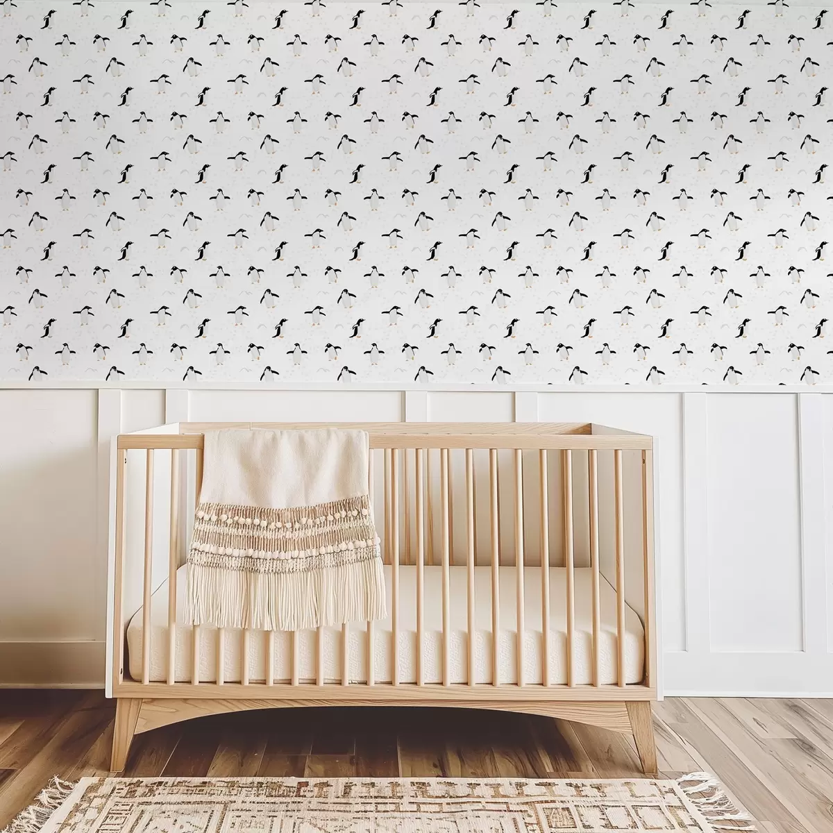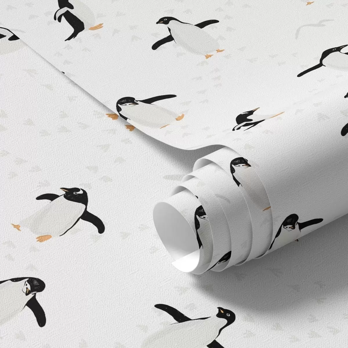 Tapet Pingviner på hvitt med fotavtrykk Nr. a00655v1