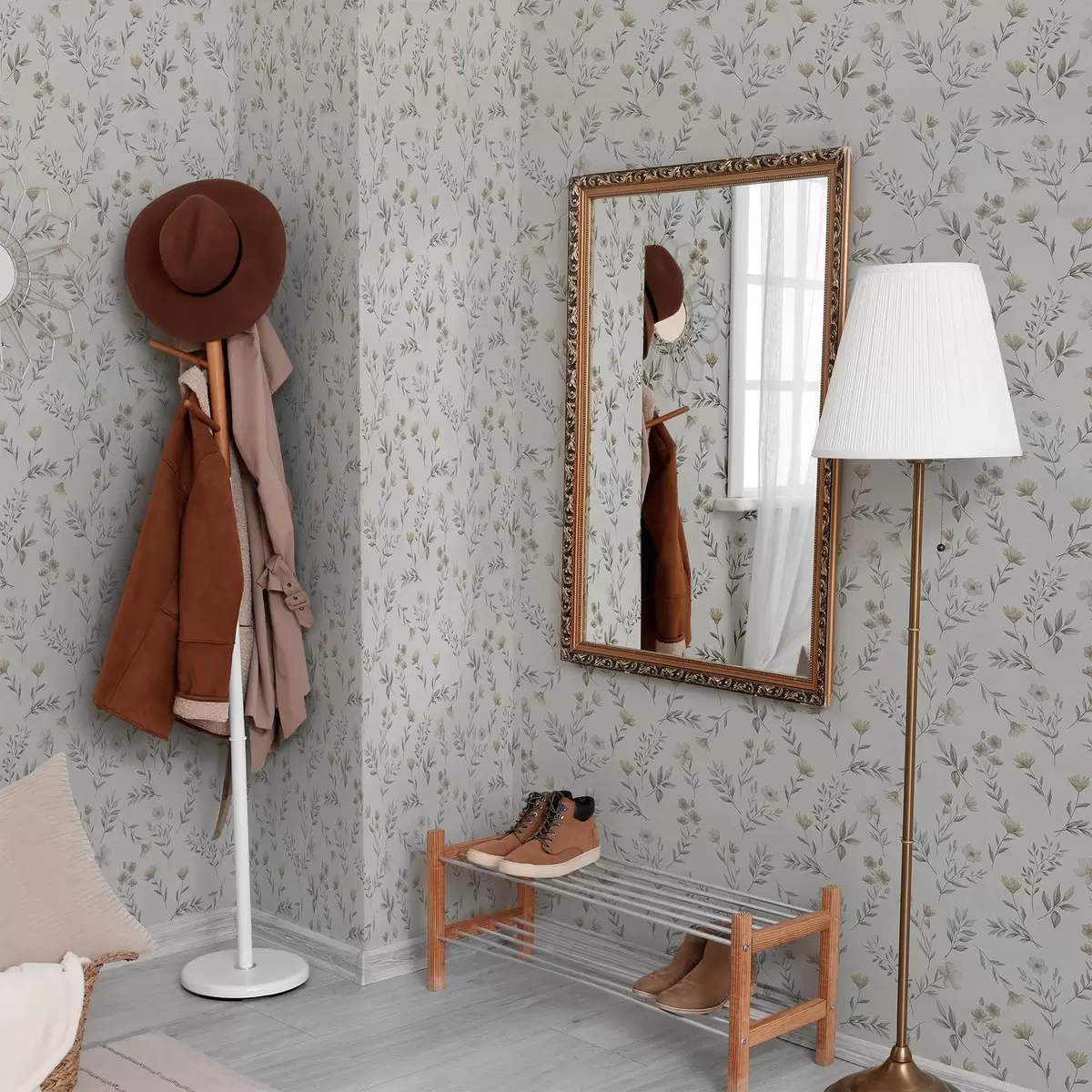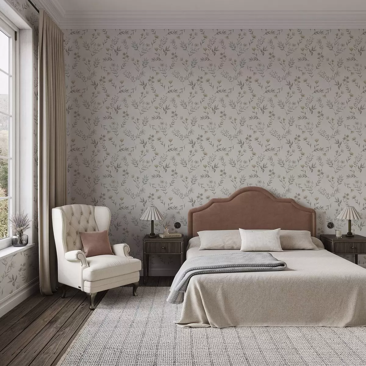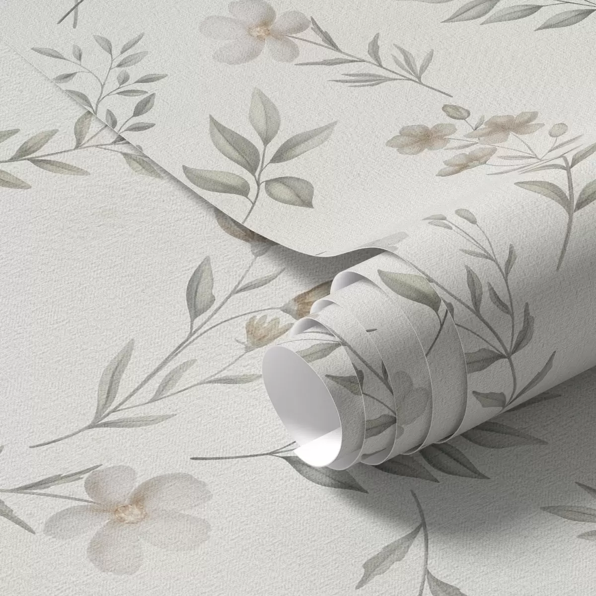 Tapet Små akvarellkvister og blomster på lys bakgrunn Nr. a00665
