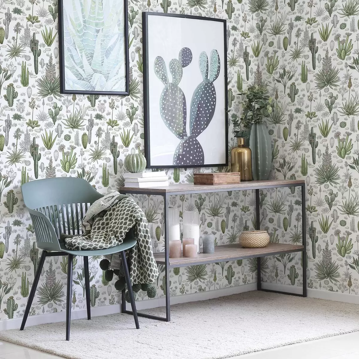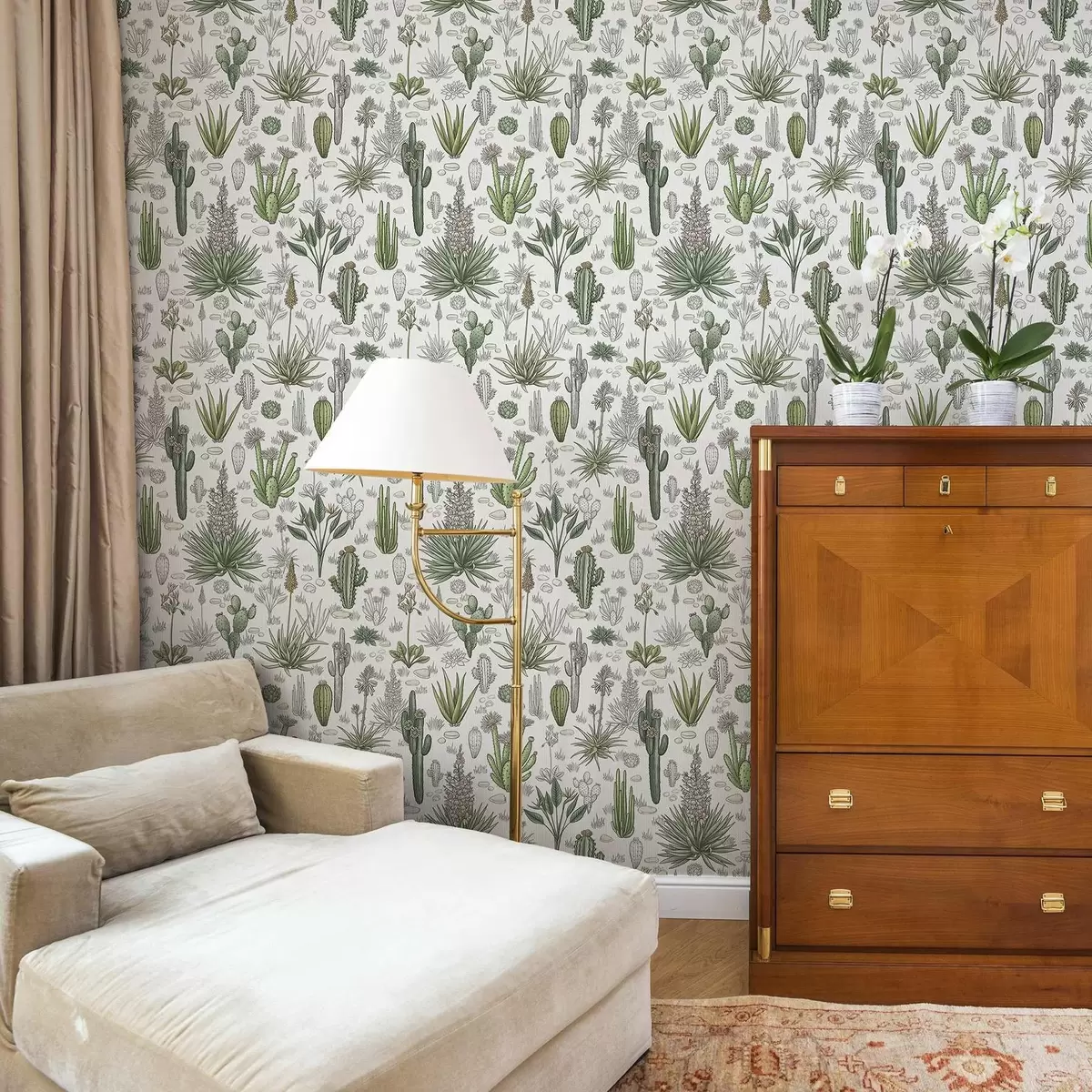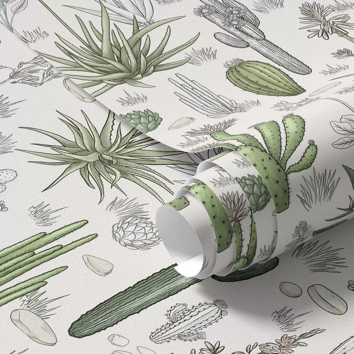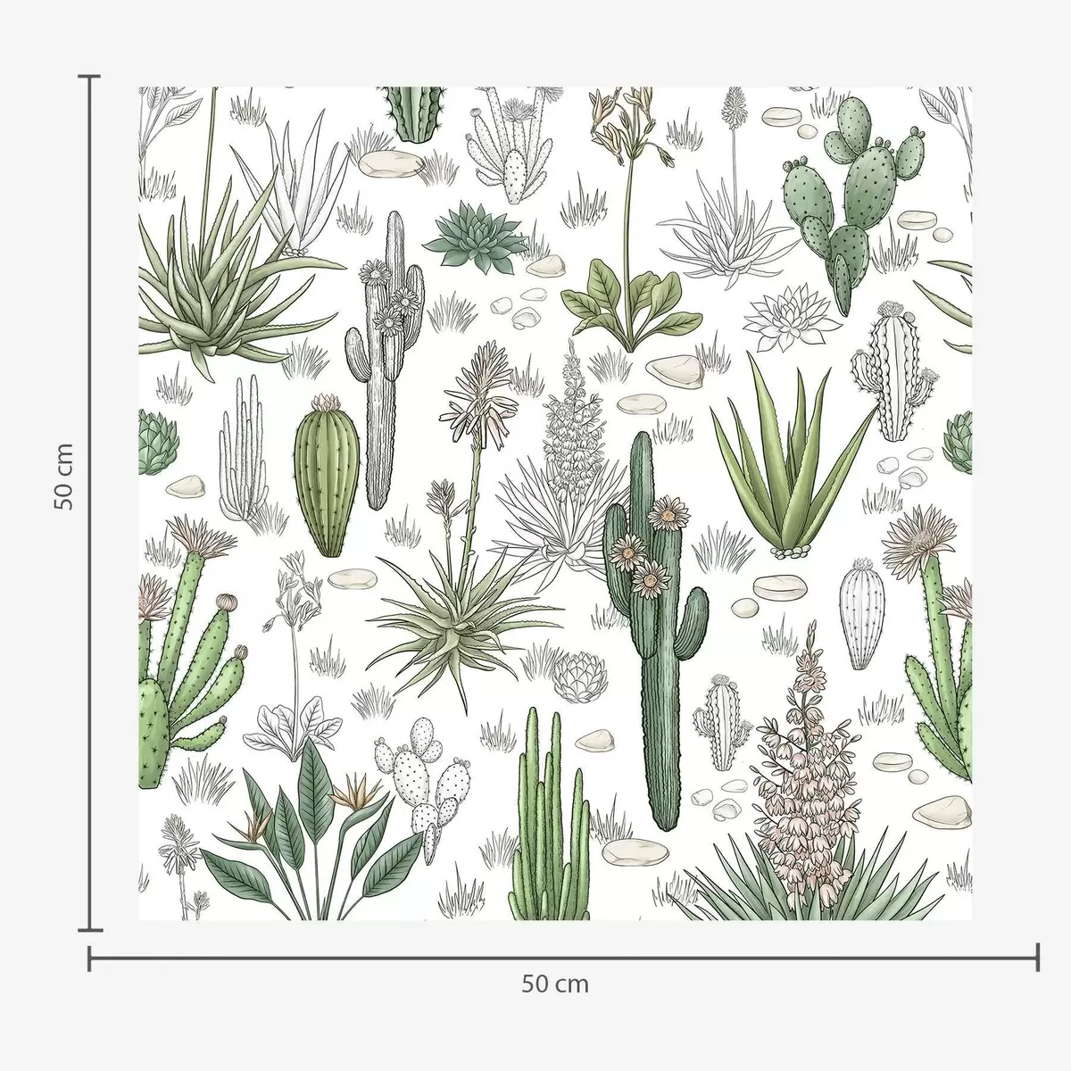 Tapet Kaktus og sukkulenter på lys bakgrunn, lineær stil Nr. a00666v1