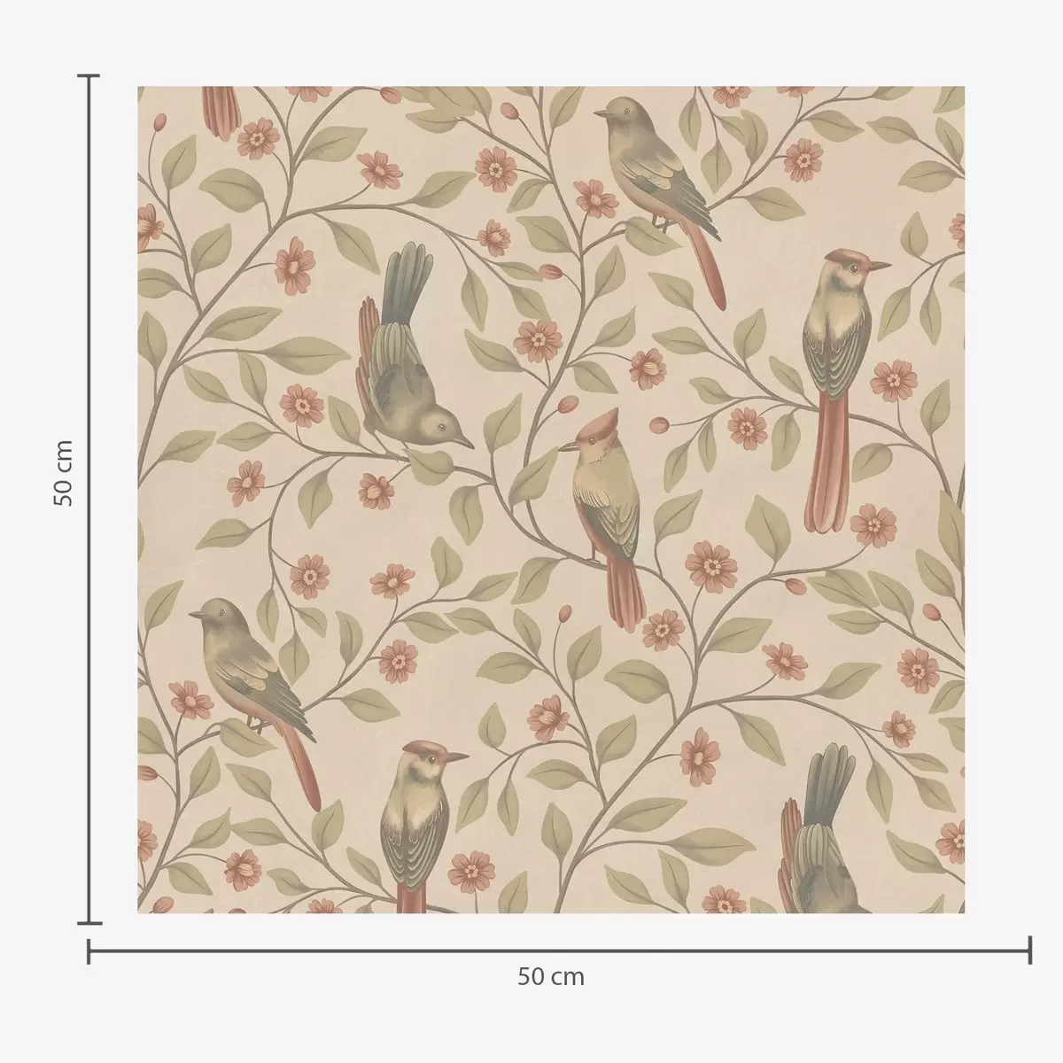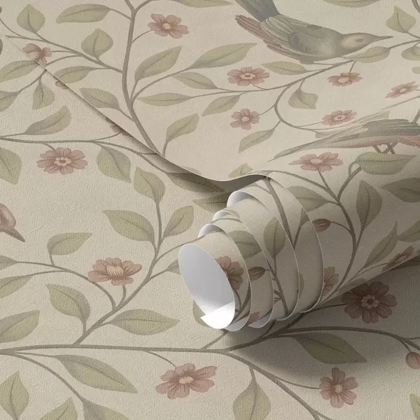 Tapet Fugler på blomstrende grener, varm beige bakgrunn Nr. a00670