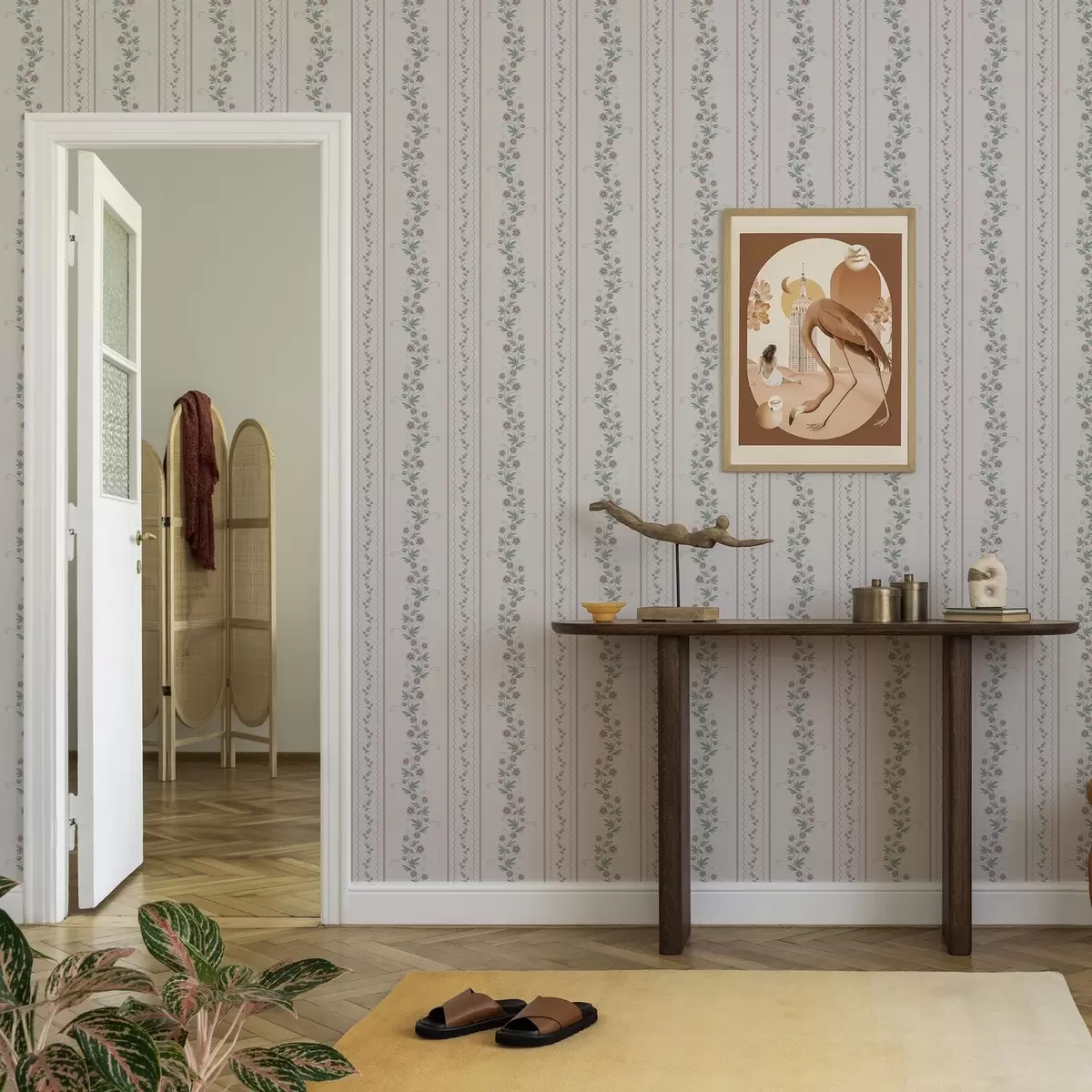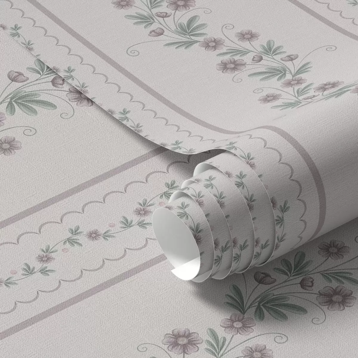 Tapet Delikate striper med lavendelblomster, vintage Nr. a00671