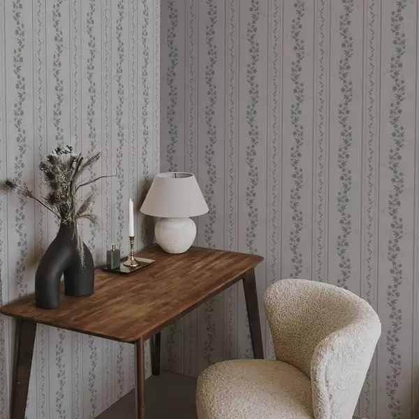 Tapet Delikate striper med lavendelblomster, vintage Nr. a00671