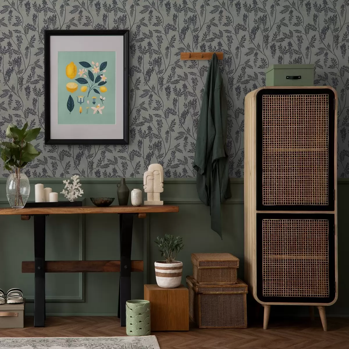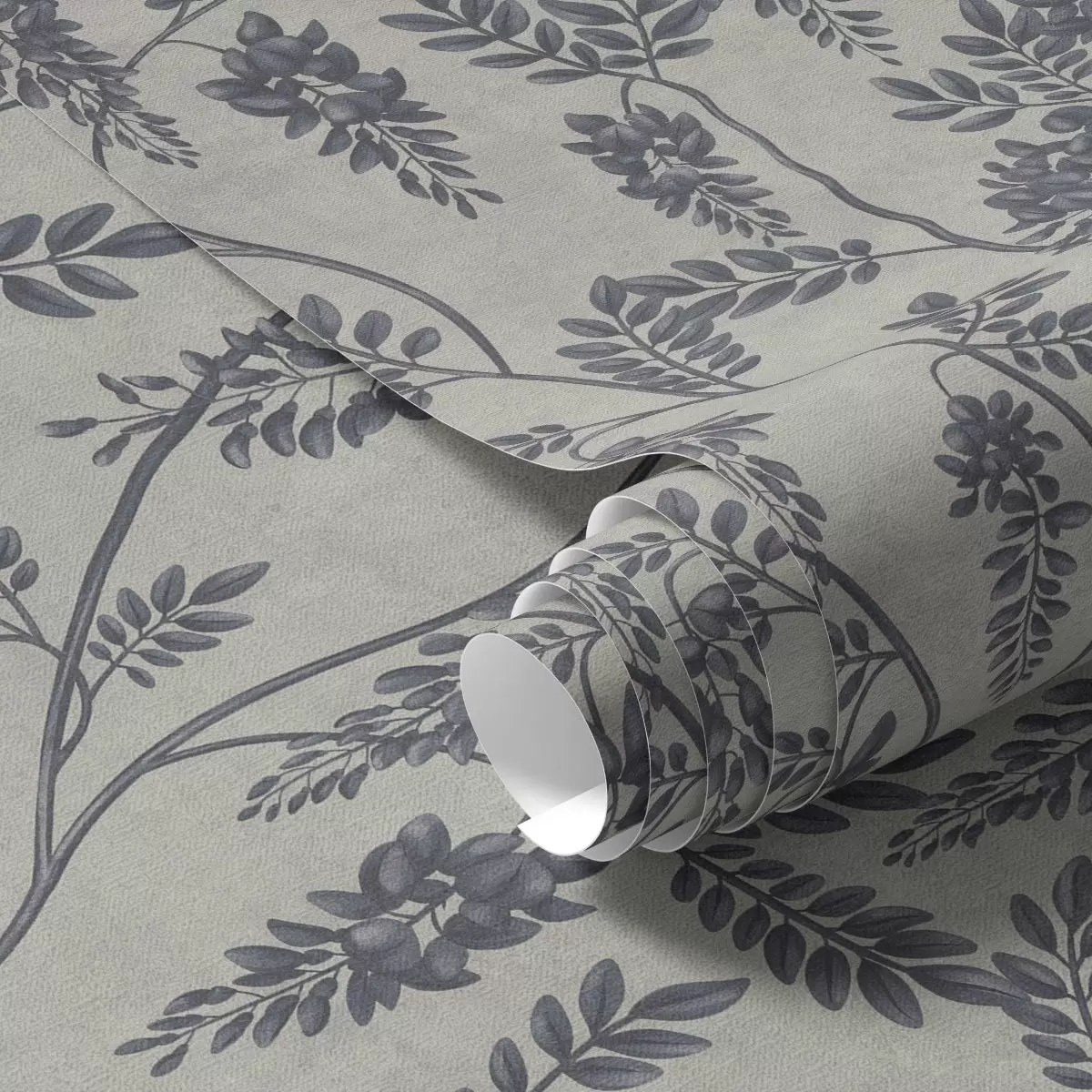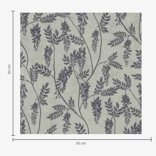 Tapet Grener med mørke blomster på en gråbeige bakgrunn Nr. a00672