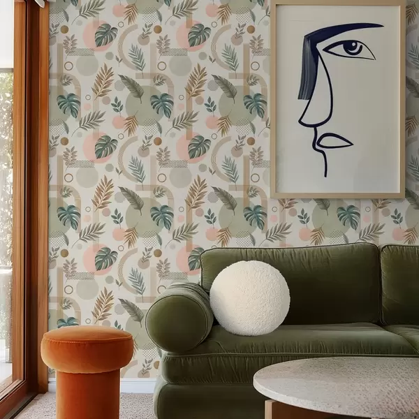 Tapet Blader og geometriske former i rolige, varme nyanser Nr. a00677