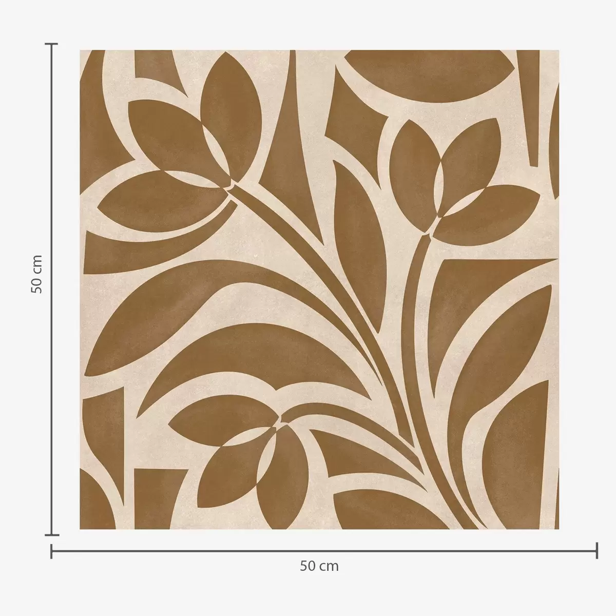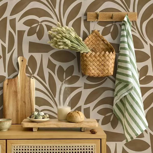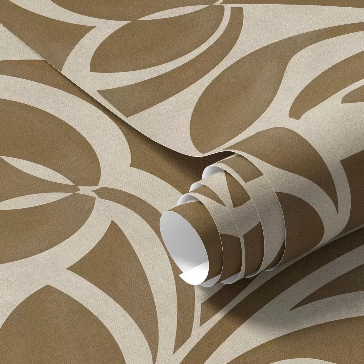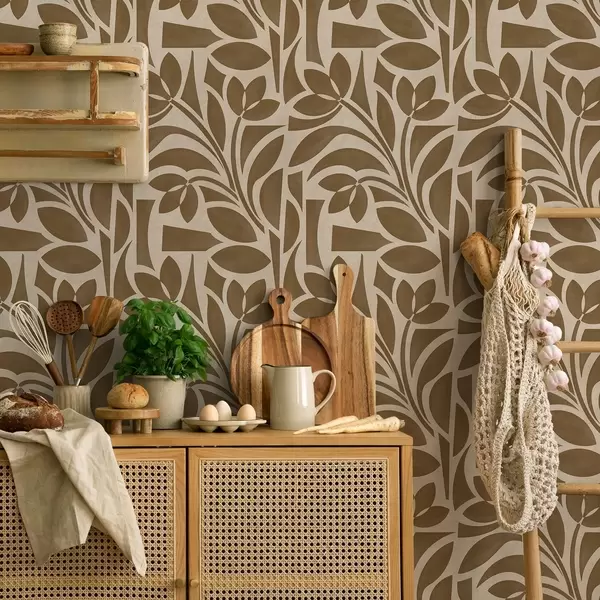 Tapet Geometriske bladsilhouetter, karamellbrune på beige Nr. a00679