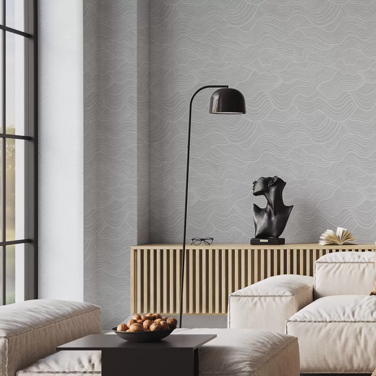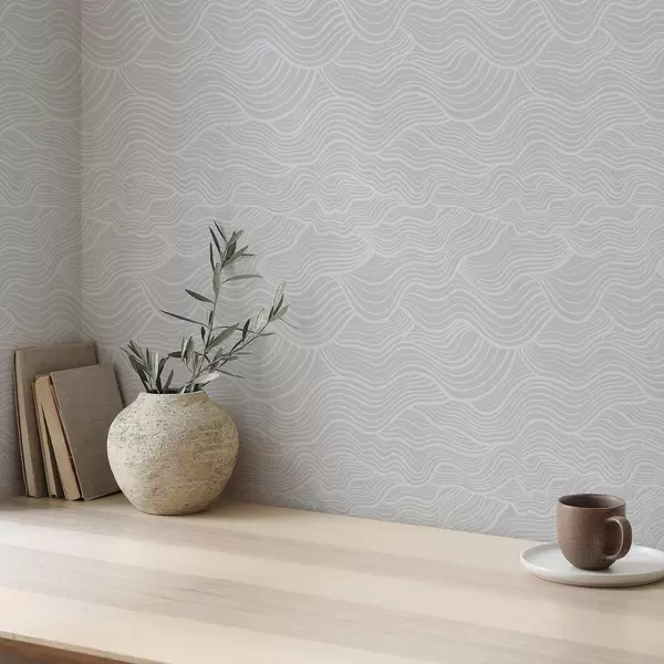 Tapet Bølget ornament: lyse linjer på grå bakgrunn Nr. a00681v2