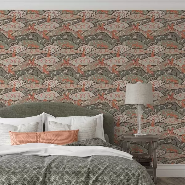 Tapet Reven og harer på bølgende åser, retro mønster Nr. a00690