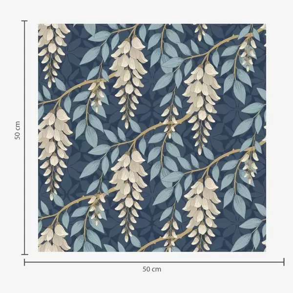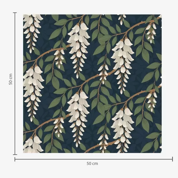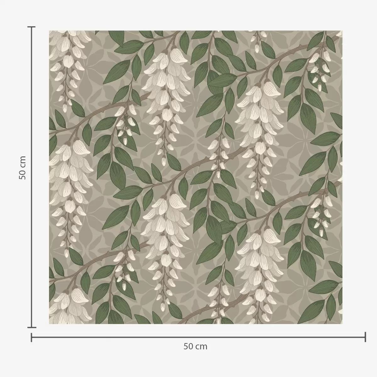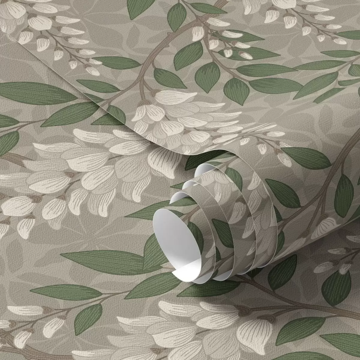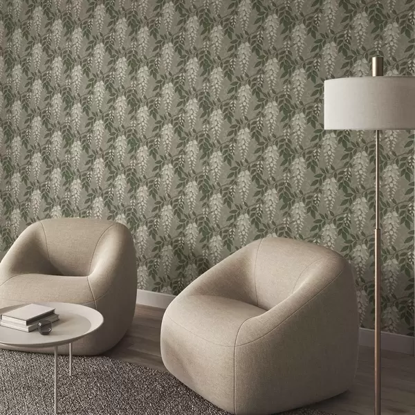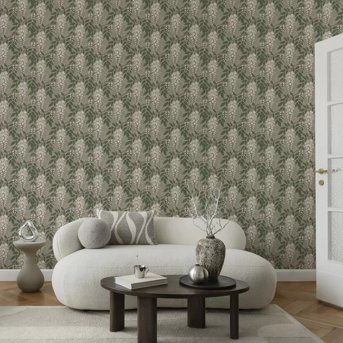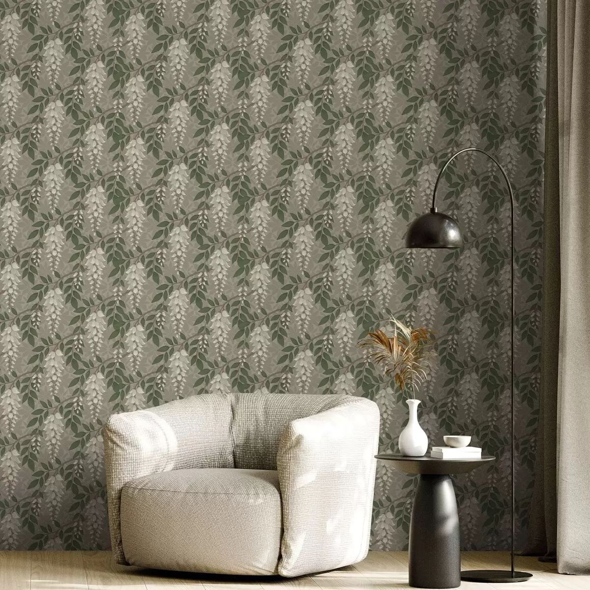 Tapet Lys blåregn på en grå-oliven bakgrunn, kaskader av klaser Nr. a00694