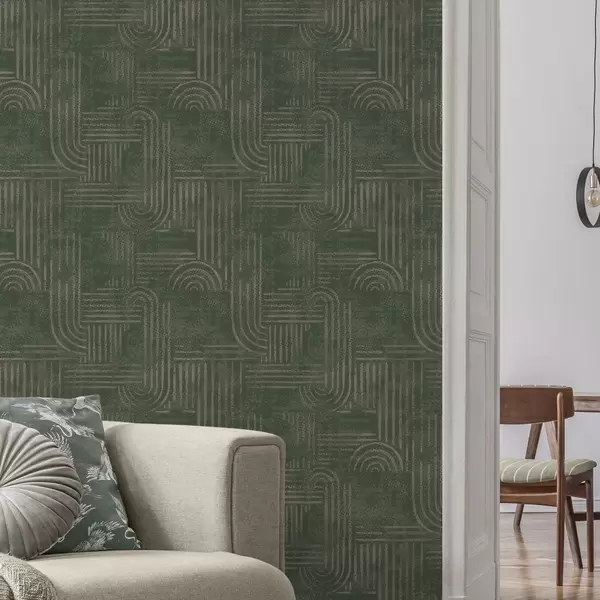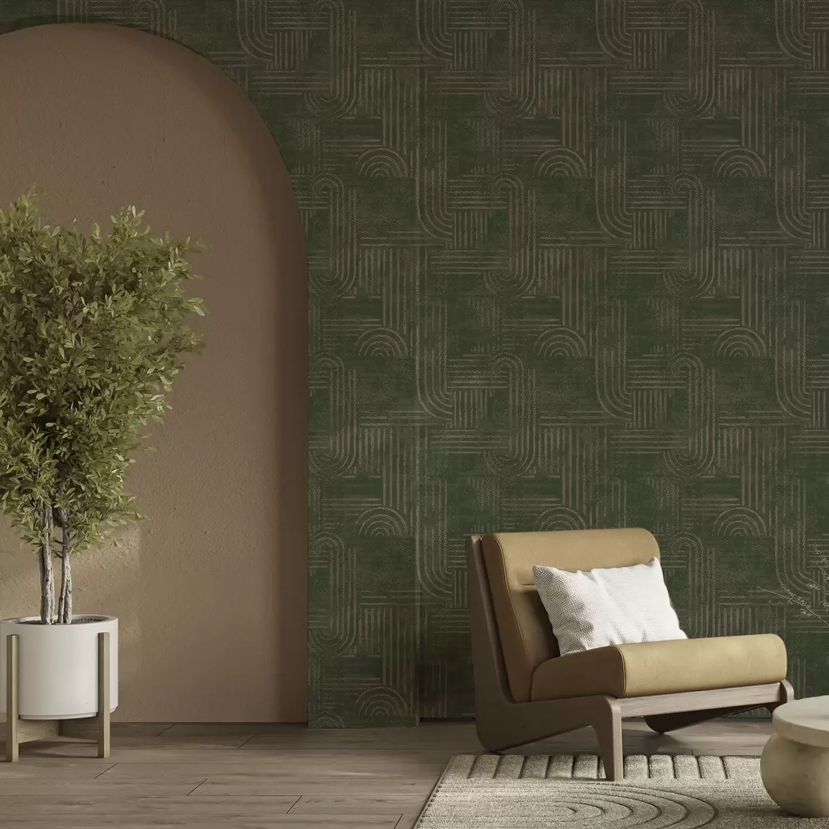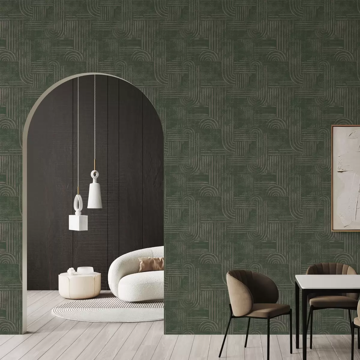 Tapet Geometrisk mønster med buer i en grønn palett Nr. a00697