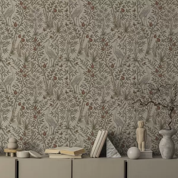 Tapet Fugler blant granatepletrær i naturlige omgivelser Nr. a00699