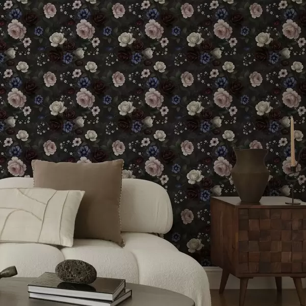 Tapet Mørke roser, anemoner og pioner på en mørk bakgrunn Nr. a00704