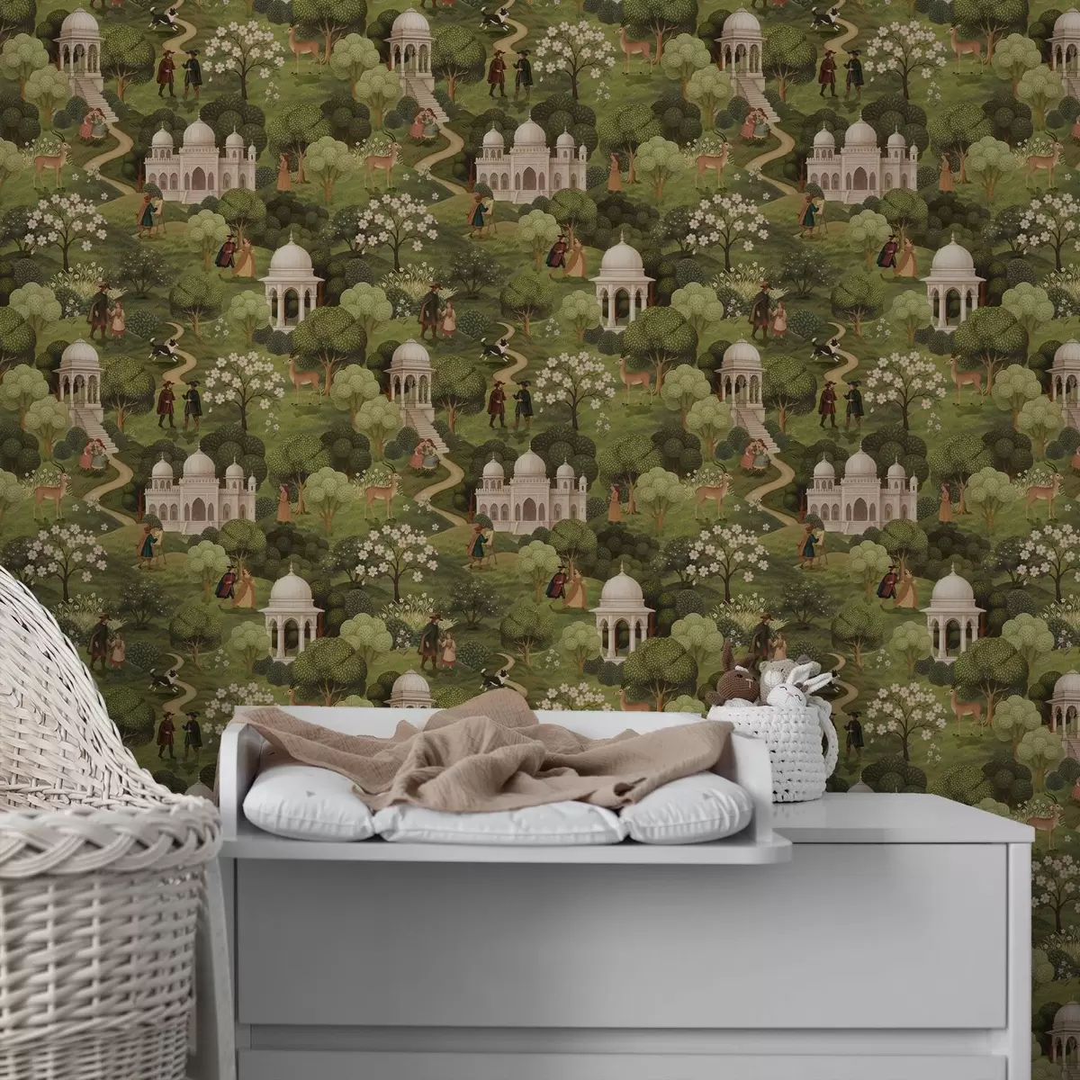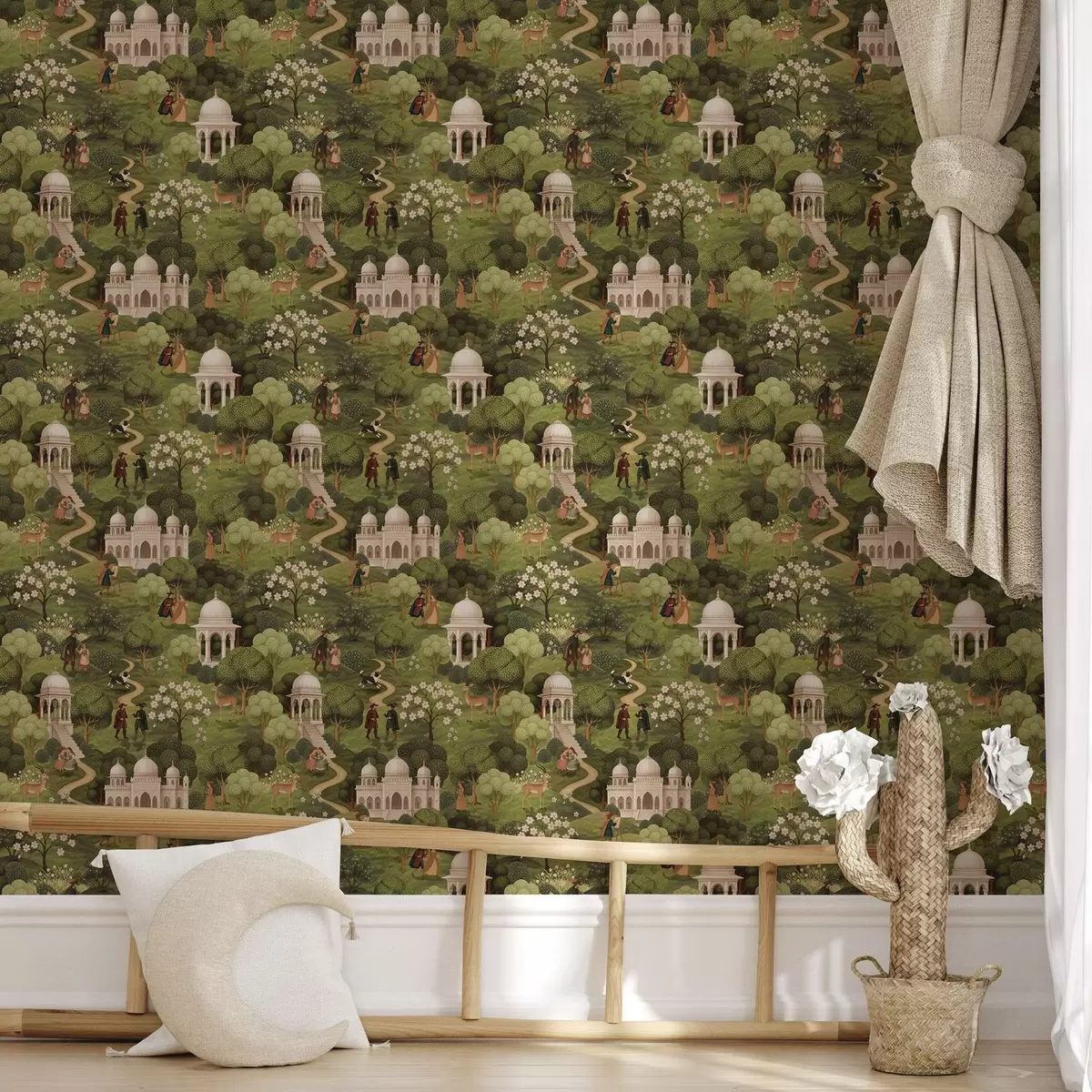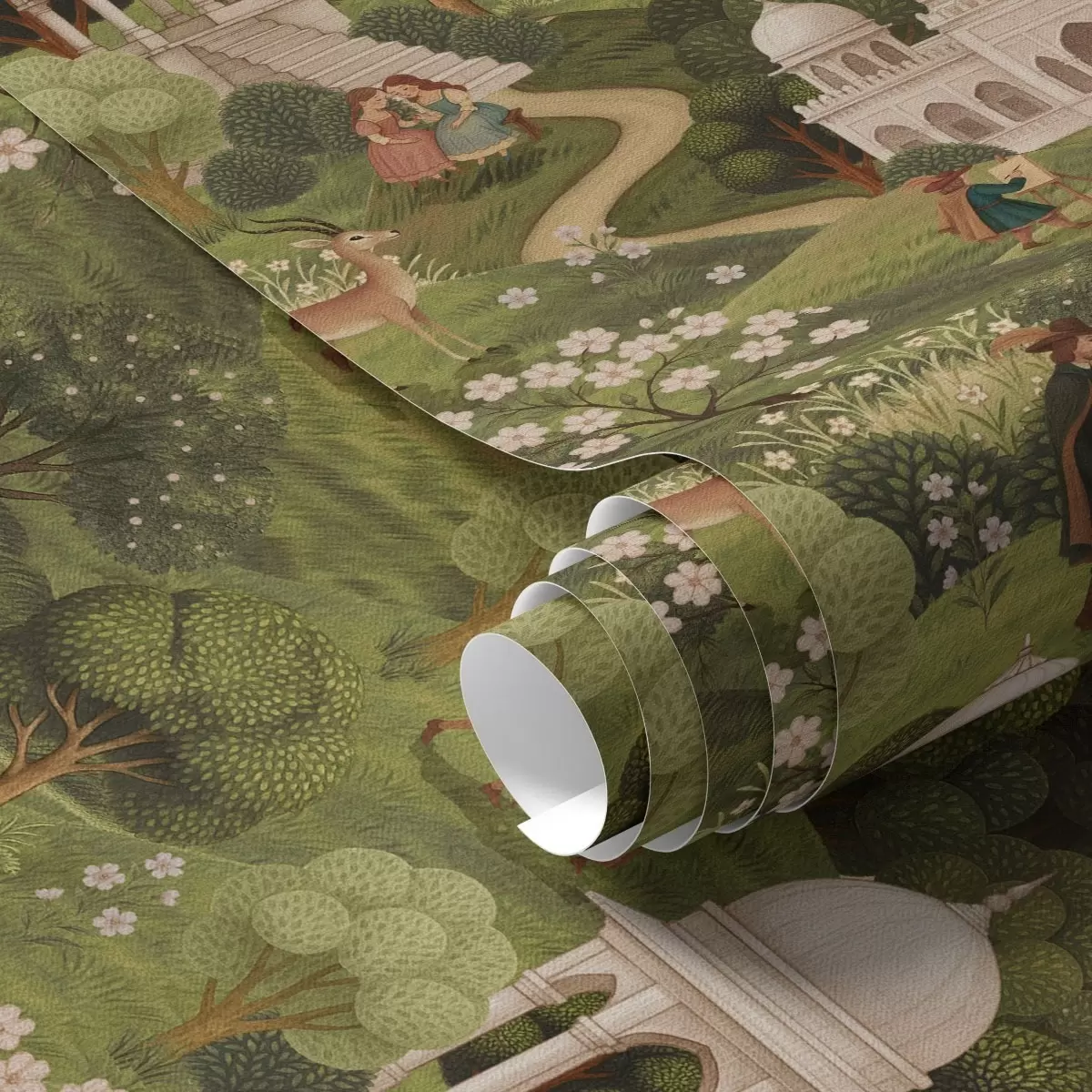 Tapet Park scene med trær og arkitektur i landskapsstil Nr. a00705