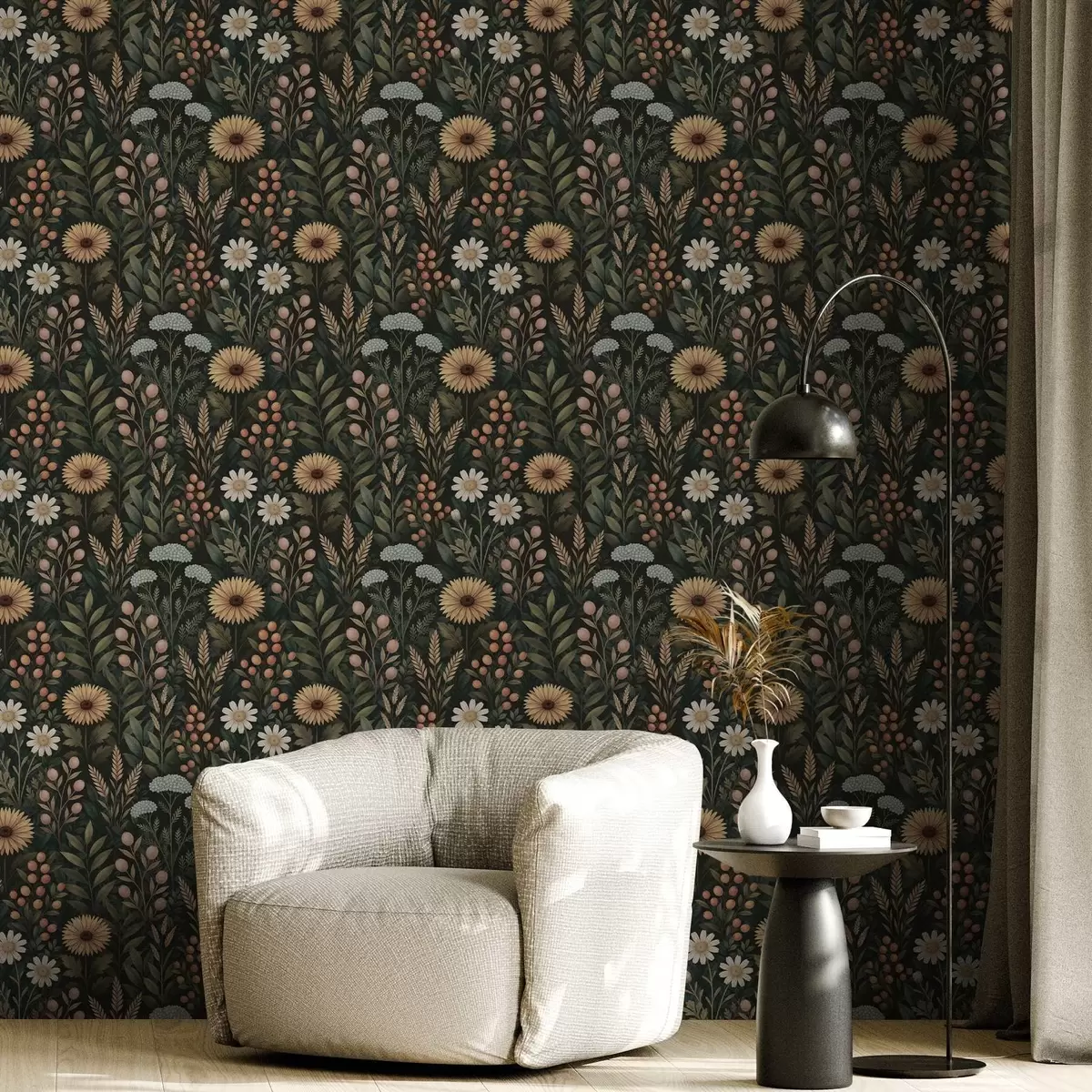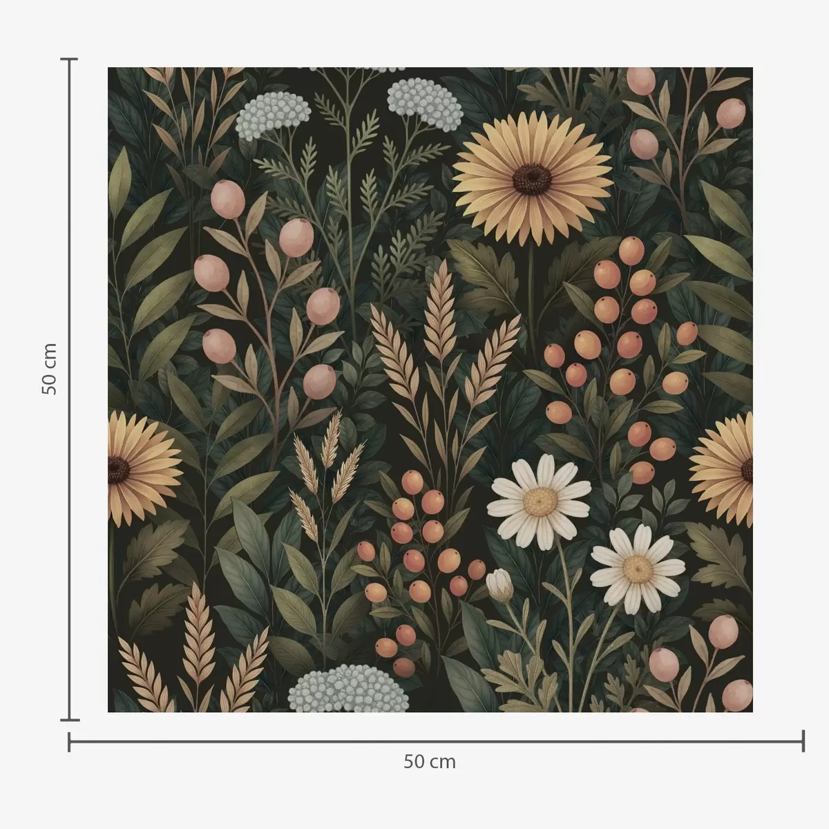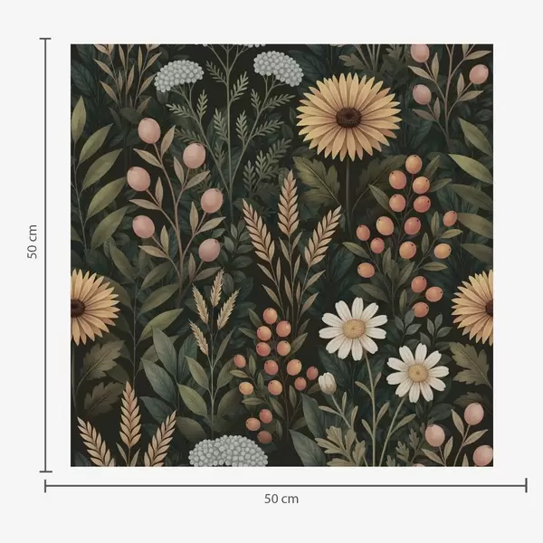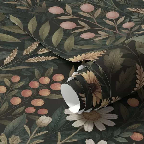 Tapet Villblomster og bær på mørk bakgrunn, naturlig ornament Nr. a00707
