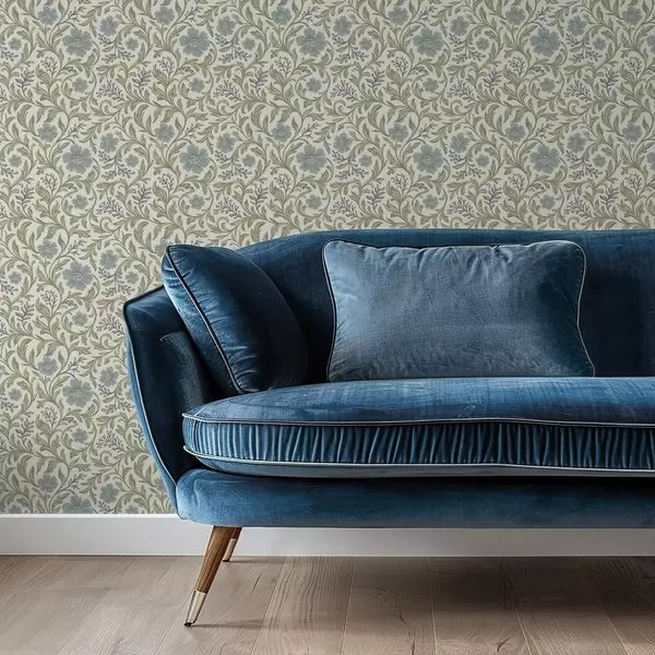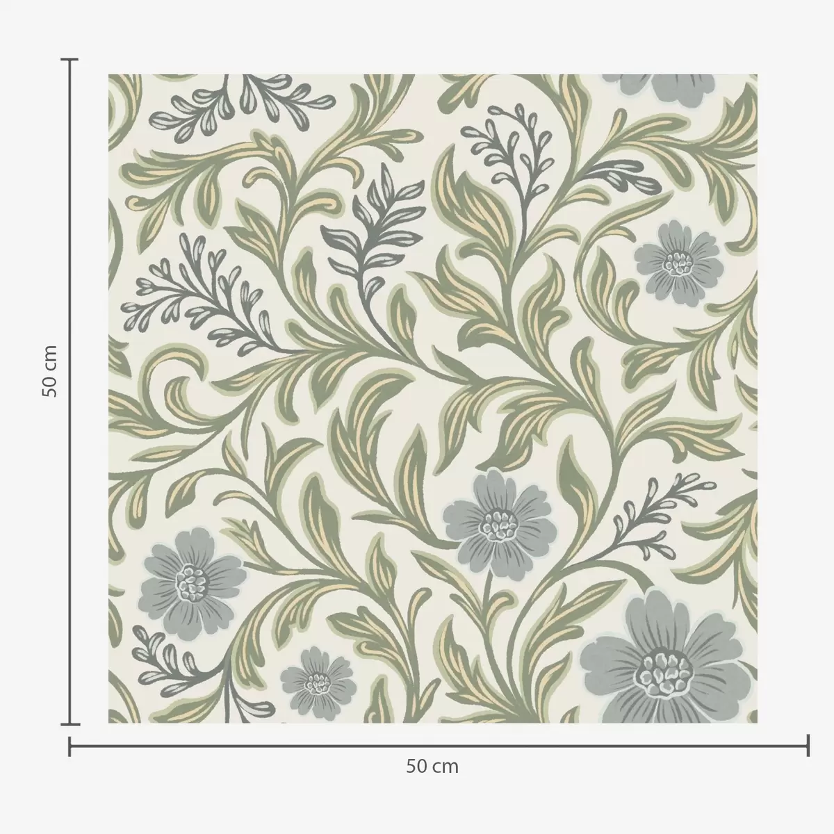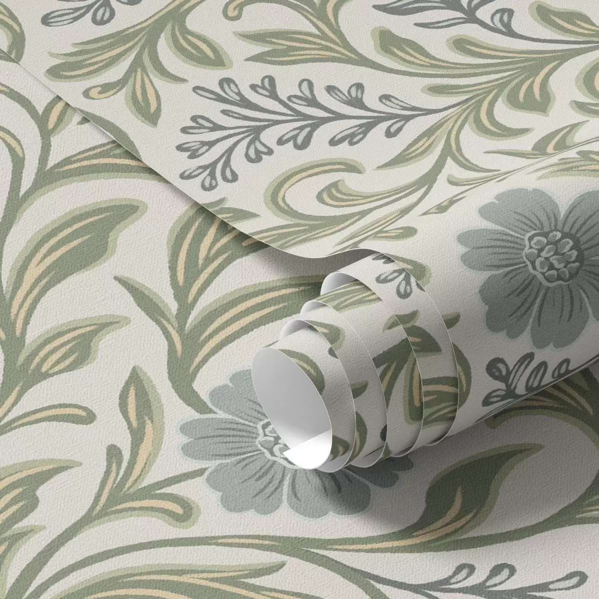 Tapet Salviegrå blomsterornament på lys bakgrunn Nr. a00712