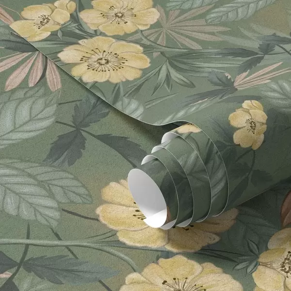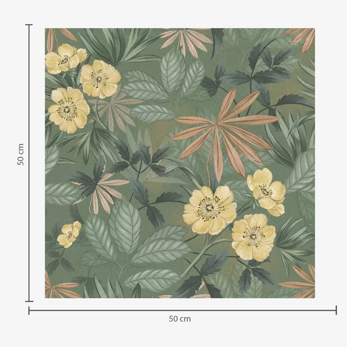 Tapet Gule blomster blant grønne, bladrike teksturer Nr. a00718