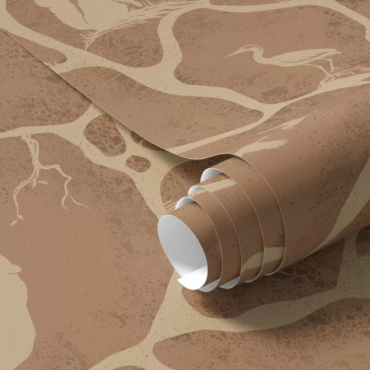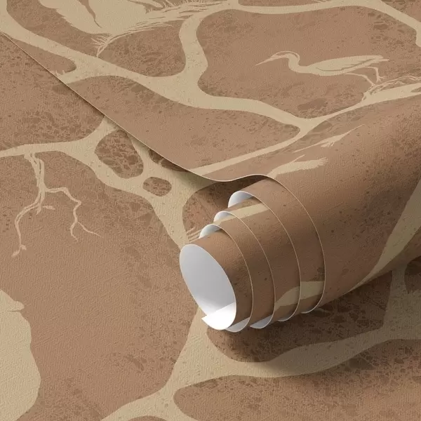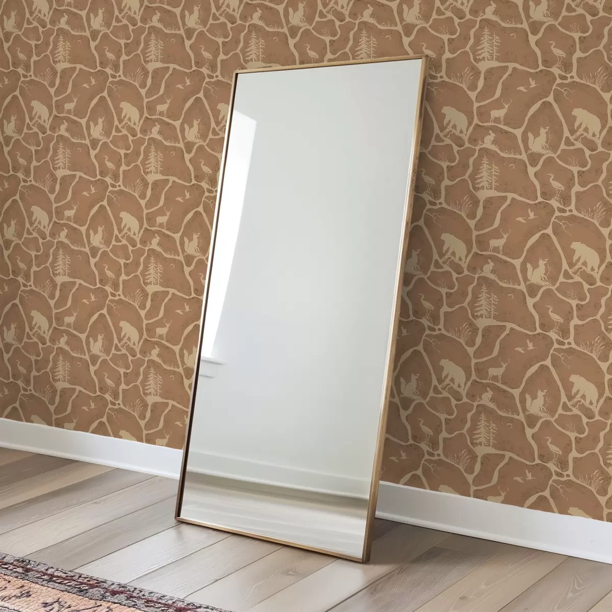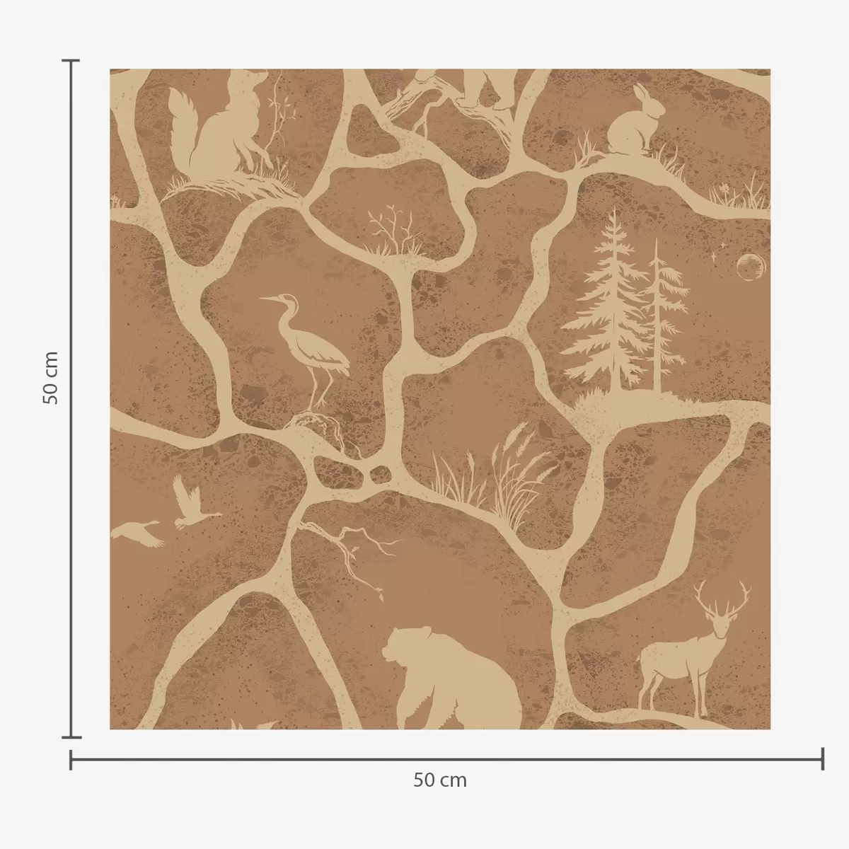Tapet Silhuetter av dyr og trær i et naturlig landskap med steinstruktur Nr. a00727