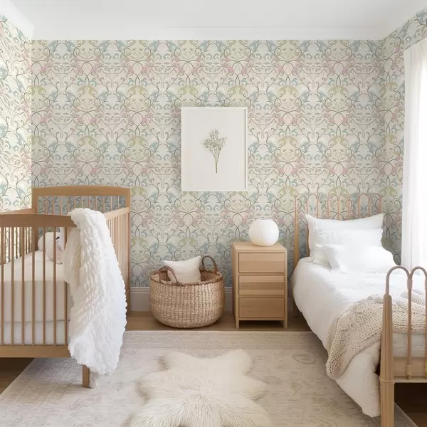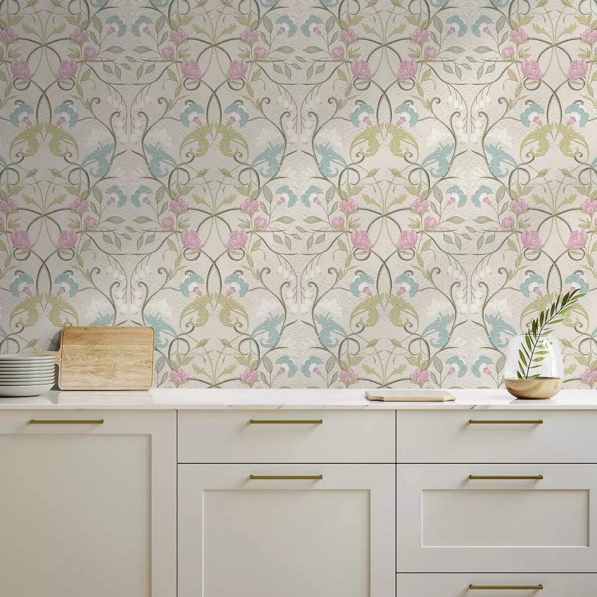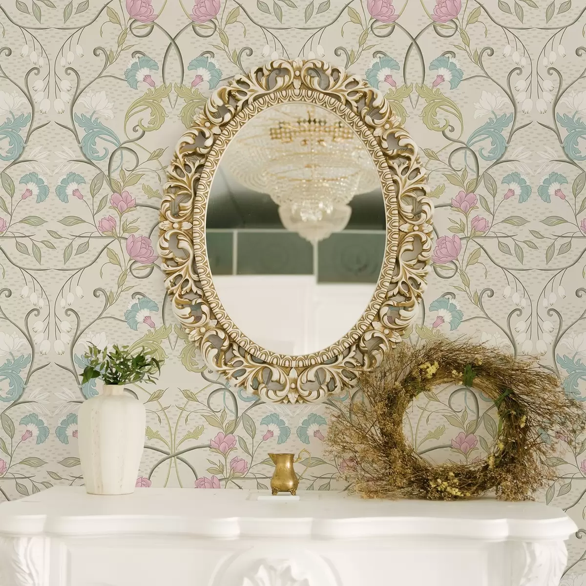 Tapet Elegant blomstermønster med rosa og blå blomster Nr. a00730