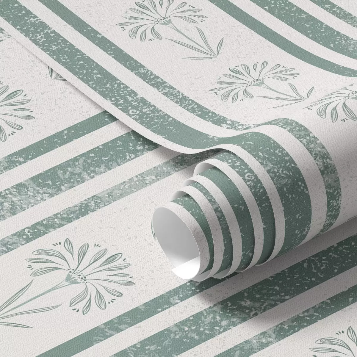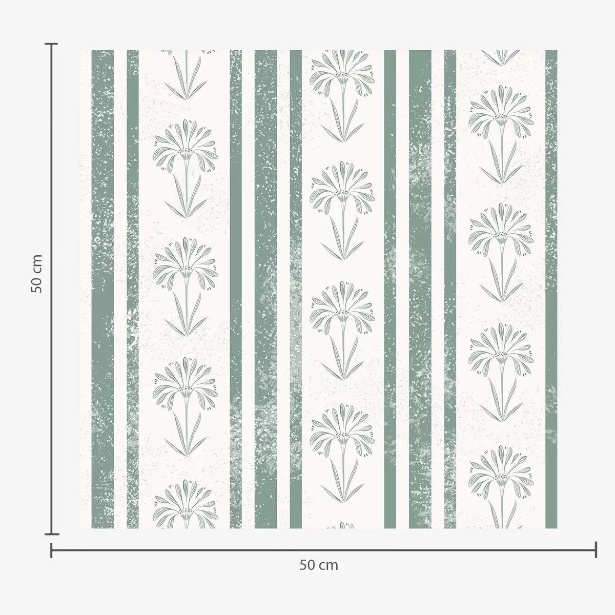 Tapet Båndmønster med blomster i grønne nyanser Nr. a00732