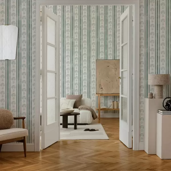 Tapet Båndmønster med blomster i grønne nyanser Nr. a00732